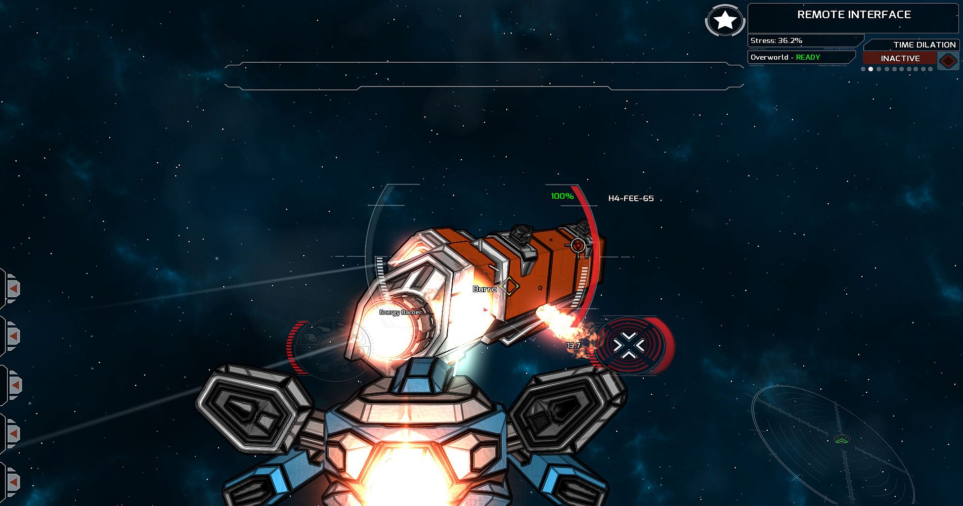 You regain consciousness in a hangar. Damaged and abandoned, barely capable of building and launching fighter drones. This is all you need to repair your ship, find a proper base of operations and claw your way back from the brink.
