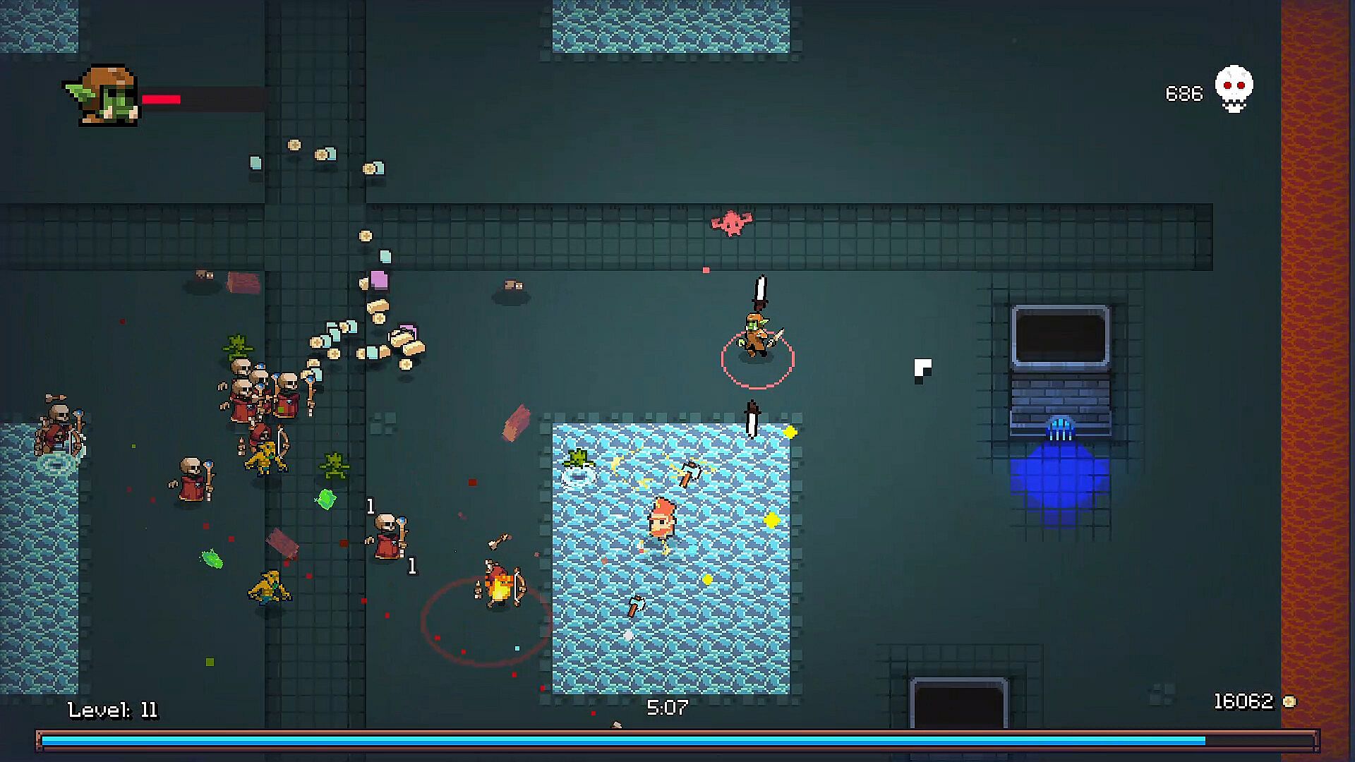 Mechanics include gathering experience points with tools like a magnet to pull them in from afar, healing via food items that appear on the map, and purchasing gear from an in-game merchant. With over 10 abilities influencing gameplay, plus a deck-building aspect to defend against hundreds of monsters, each run feels fresh. Rogue-lite progression allows unlocking more characters and refining builds over time, emphasizing endurance and enemy elimination in unlimited sessions.