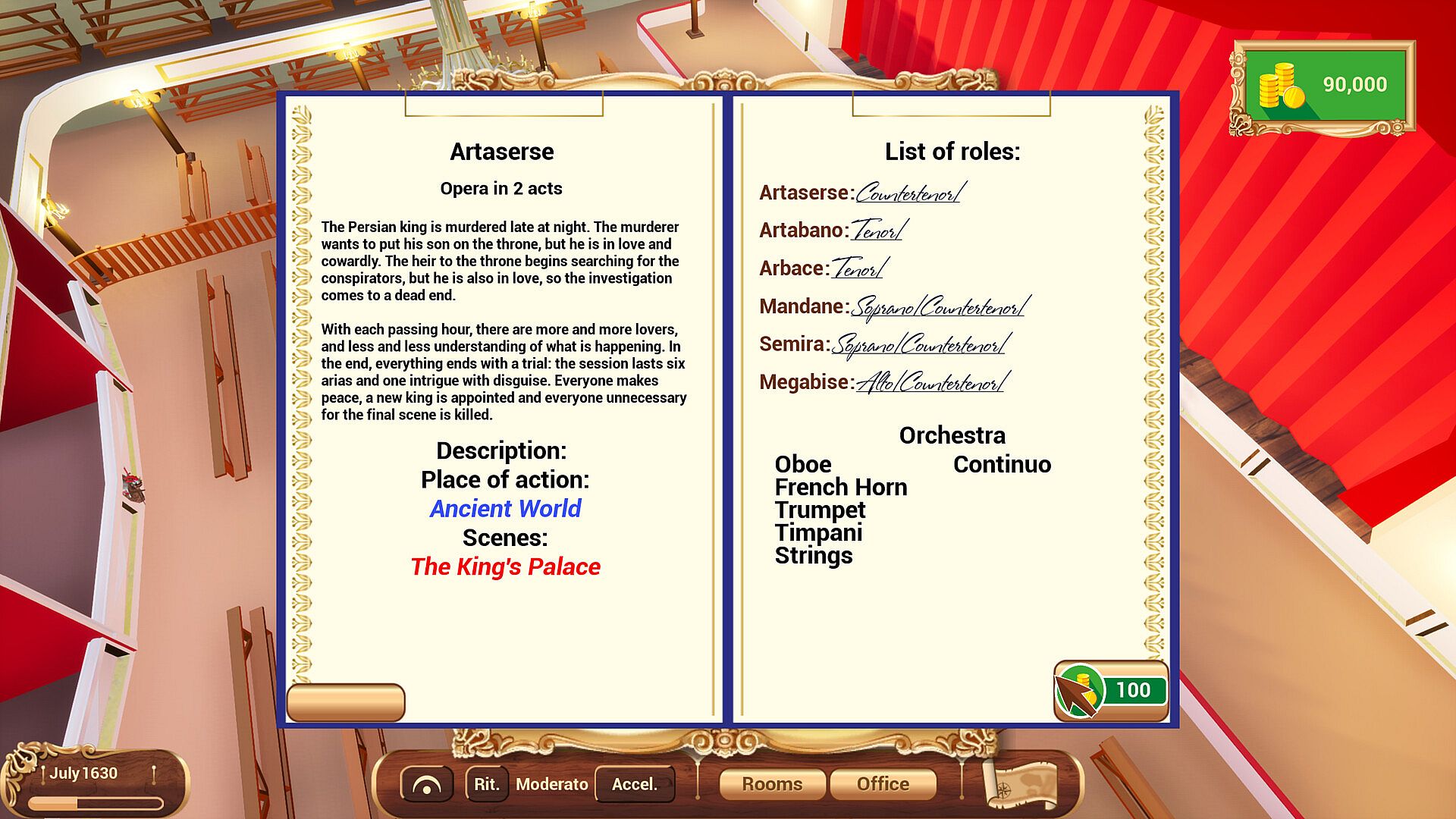 Recruit a troupe, collect scores, build rehearsal halls, and most importantly — stage operas that will go down in history.