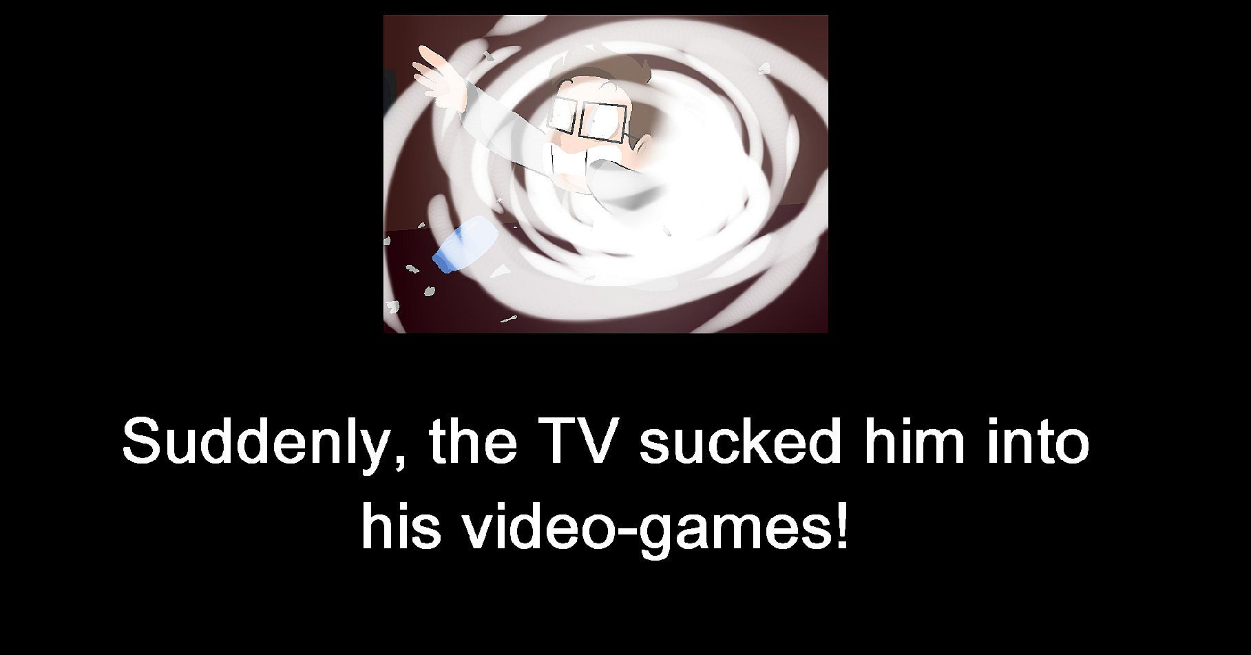 Alex is a fan of video-games since he is 7. One night, while he was playing as the storm rages outside, he got his mind and body transferred into his console and TV ! To get out he has to take the place of his beloved heroes : Nario, Pegaman and Lonic and beat the levels !