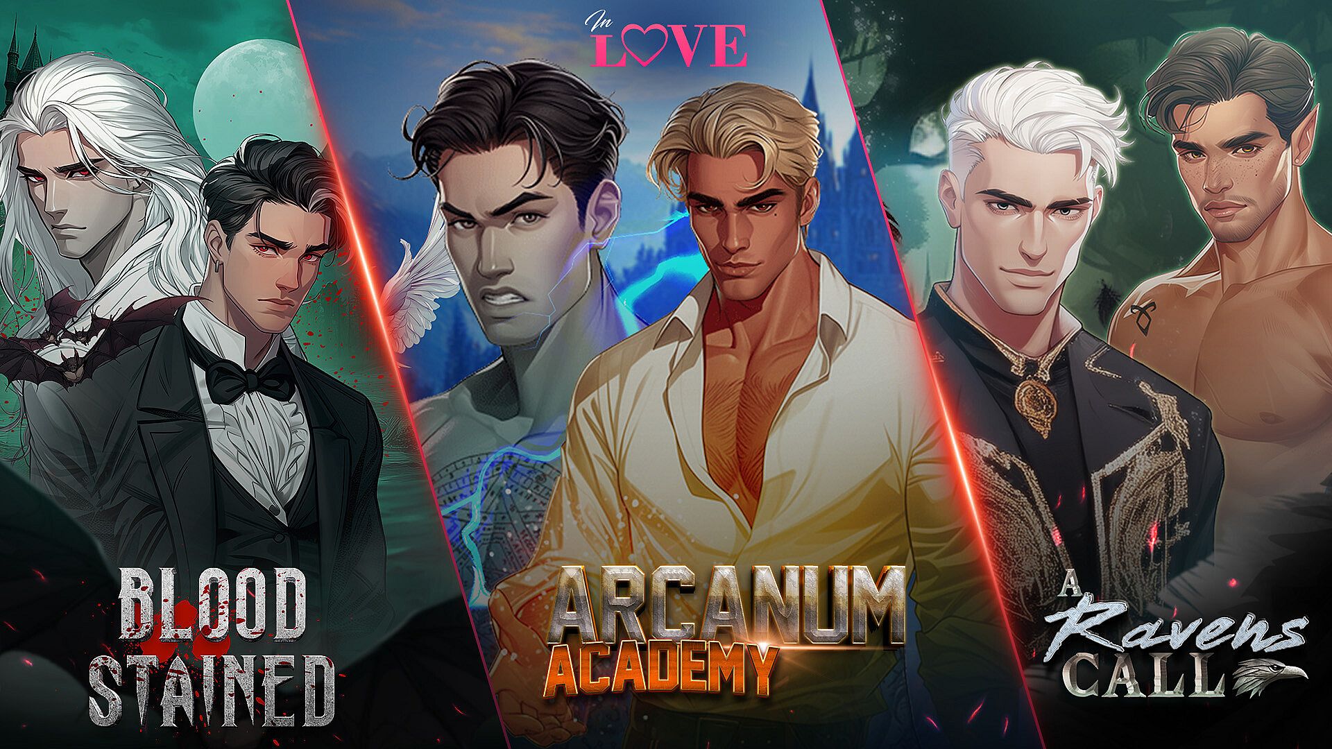 Step into the spellbinding world of IN LOVE: Mystic Passions Pack, a collection where love meets the supernatural. In A Raven’s Call, a dark destiny binds you to a mysterious presence. In Bloodstained, explore a forbidden romance where passion and danger intertwine. Finally, Arcanum Academy immerses you in a magical world full of secrets and emotion.