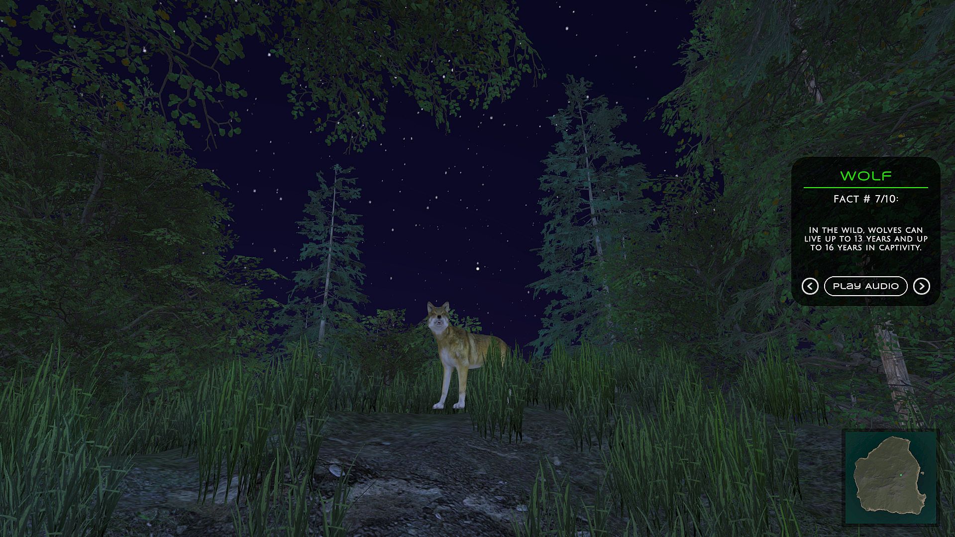 In the Wild is an educational game where you play as real forest animals, roam a beautiful island, and collect fact orbs to learn real-world facts about the animals you control.