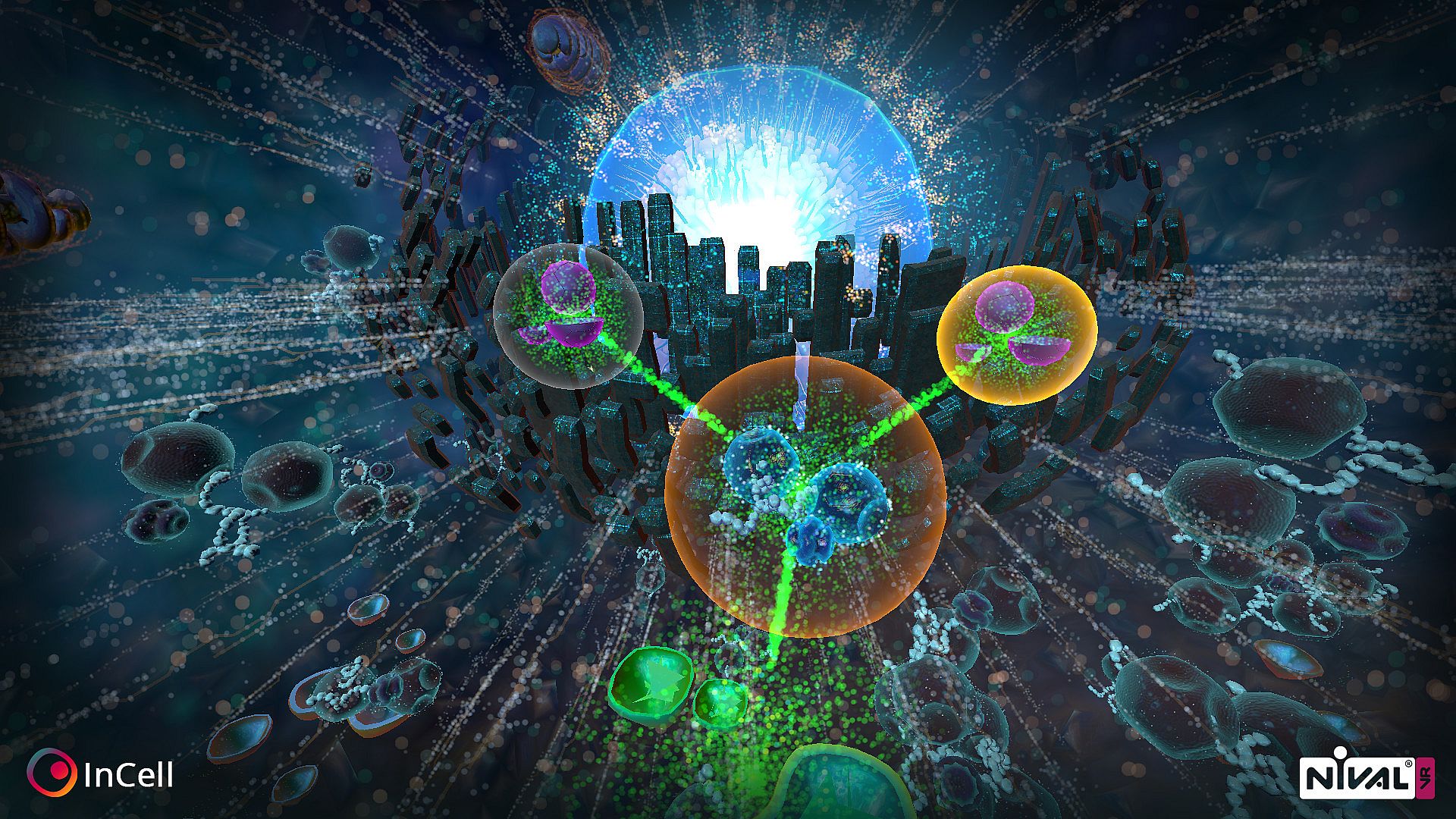 InCell is an action/racing game with a bit of strategy and science thrown into the mix in a rare and highly unusual microworld of the carefully recreated human cell. This is the right project to start your acquaintance with VR or receive new VR impressions. The game is focused on Virtual Reality but you can play just fine without a set.