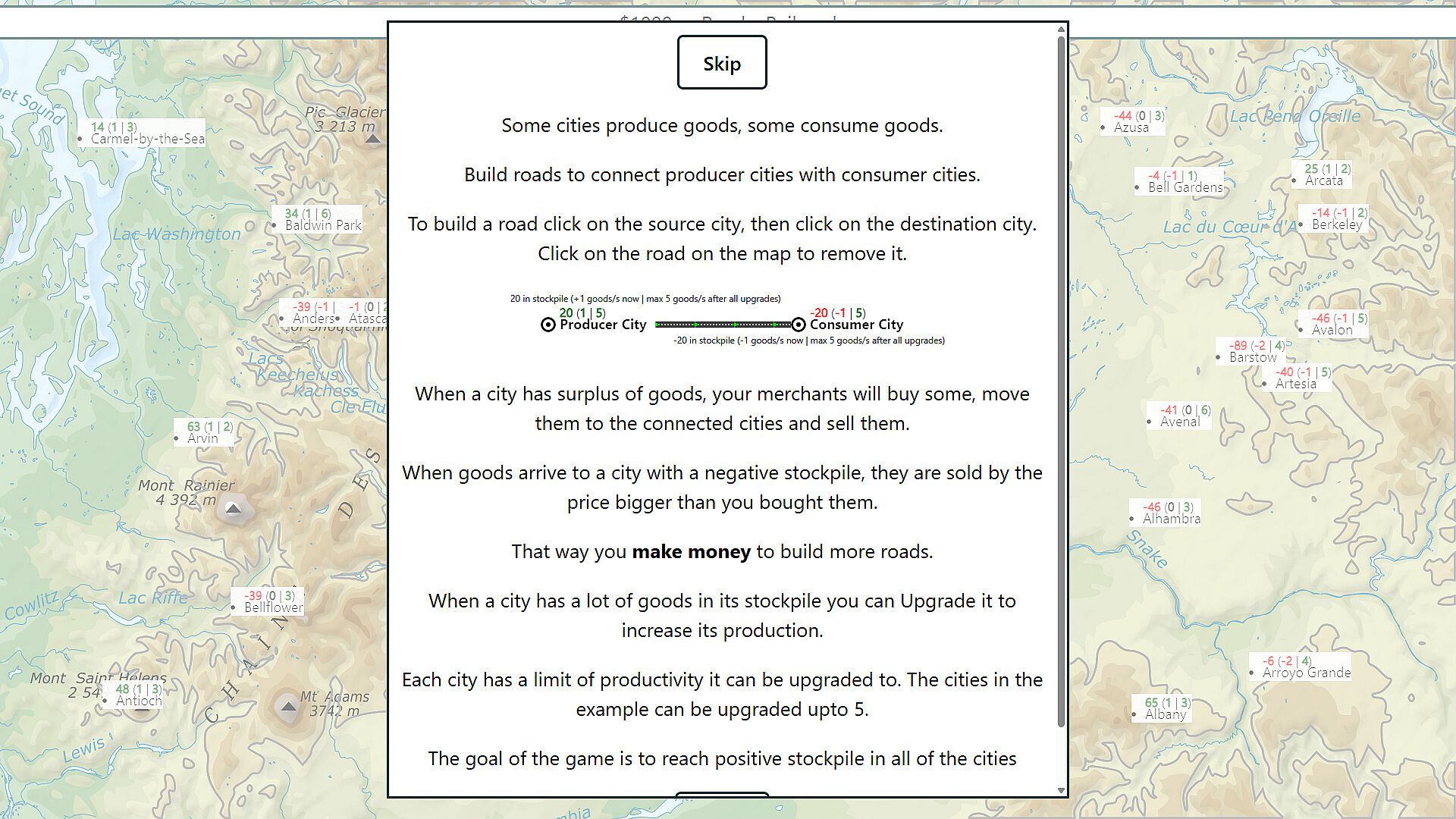 The game is full of explore-exploit tradeoffs. Do you invest in one big city and build it up, or spread your resources across several smaller hubs? Should you trade goods now to build more railroads, or stockpile for future upgrades? Is that expensive route through the mountains worth it, or is there a smarter configuration?