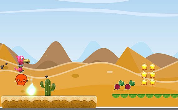 This game plunges players into a desert adventure filled with challenges and surprises. Players take on the role of a red-beaked bird, using the ASDW keys to move and the space bar to attack. In this vast desert, the red-beaked bird must proceed with caution, as the path is littered with various obstacles and traps. A single misstep could lead to falling into a trap or colliding with a monster, resulting in game over. Fortunately, the desert is also dotted with numerous gold coins that players can collect to increase their score. The game features vivid and colorful visuals, from the scorching desert to the occasional oasis, each scene is lifelike. Rich sound effects, from the bird's calls to the jingling of coins and the regretful sounds upon failure, greatly enhance the game's immersion and enjoyment.