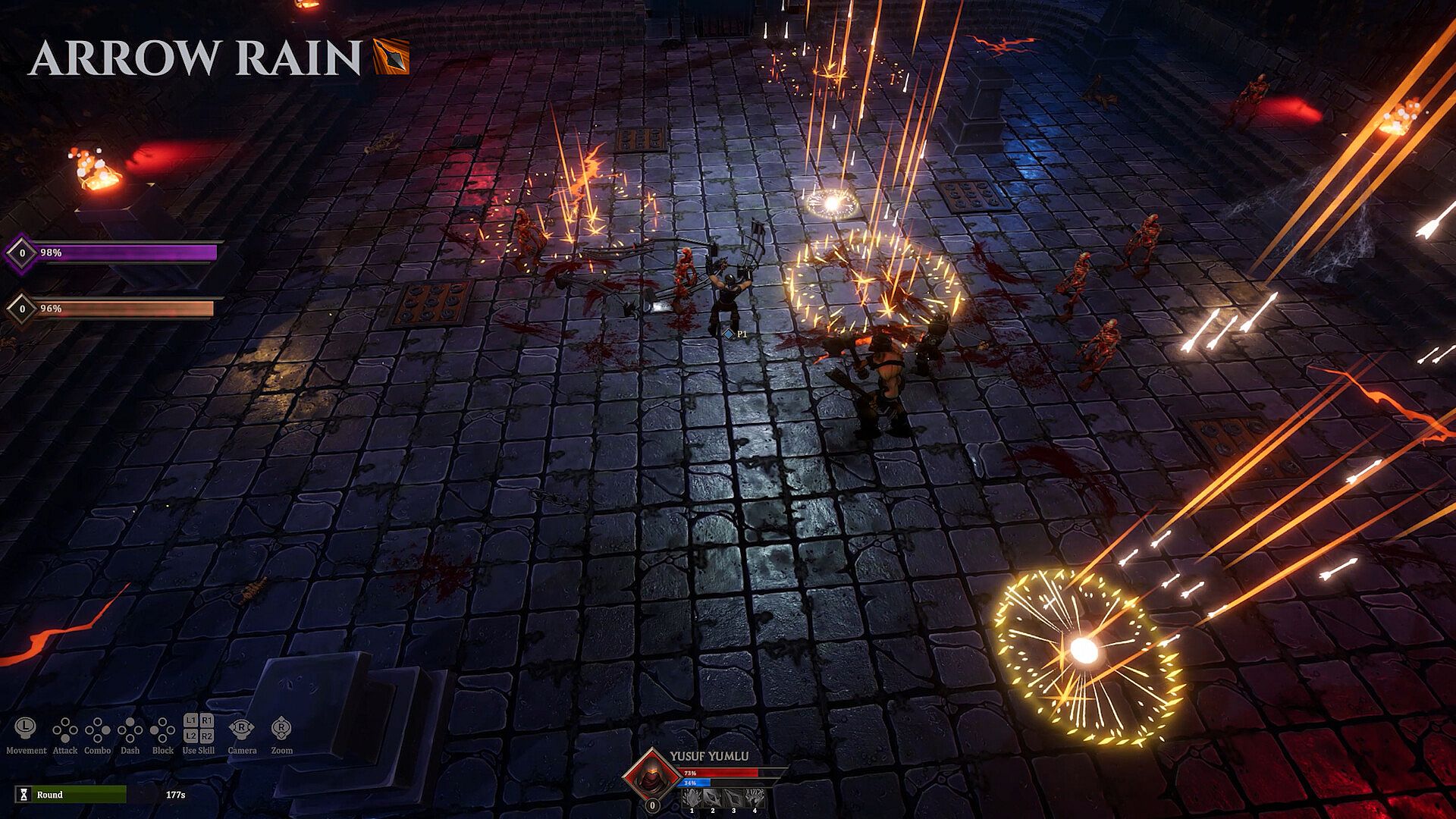 Gain XP after each match to unlock new arenas. As your level increases, the difficulty rises and even the audience becomes a crowd of skeletons.