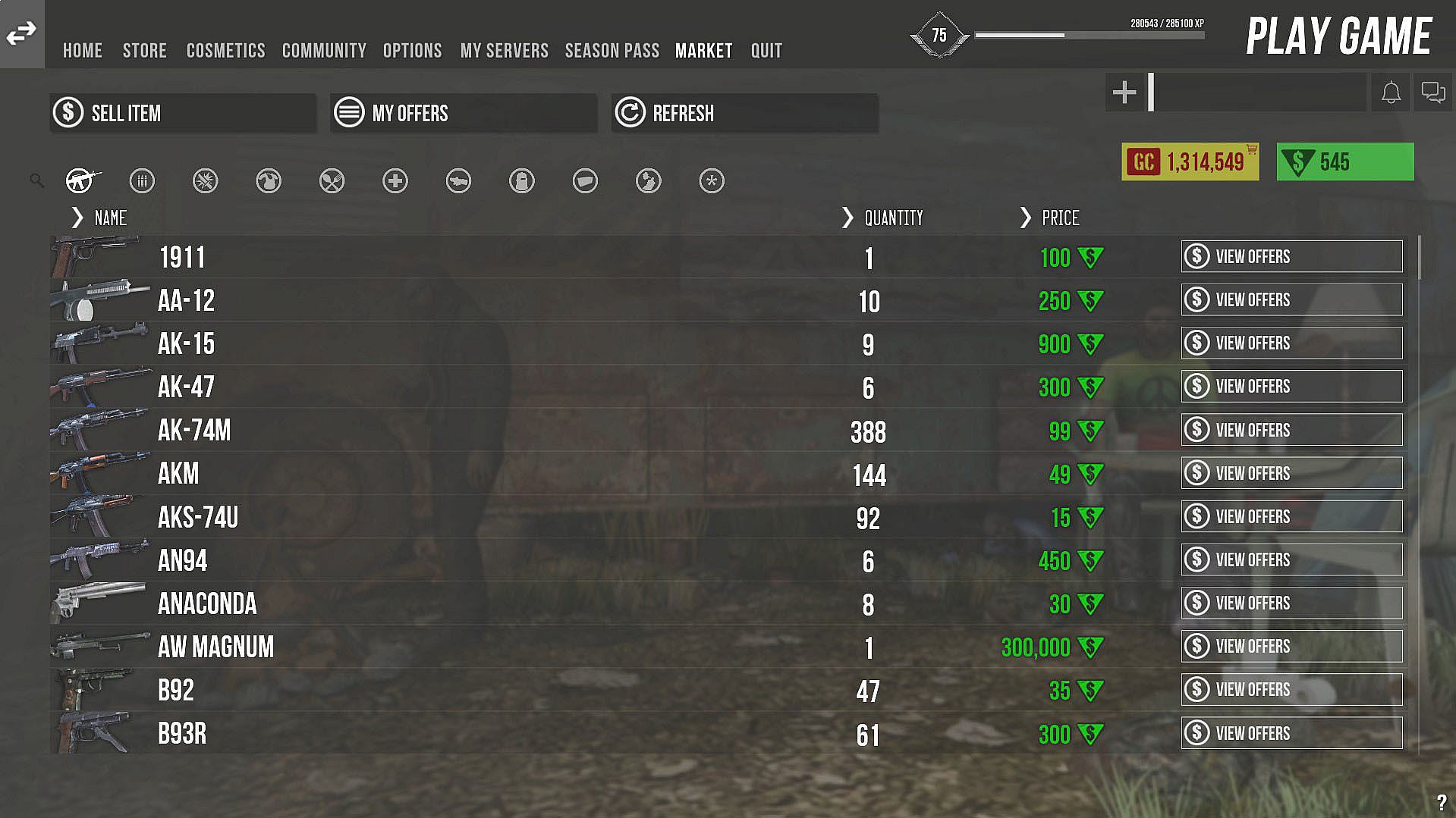 - Flea market where you can sell your looted items