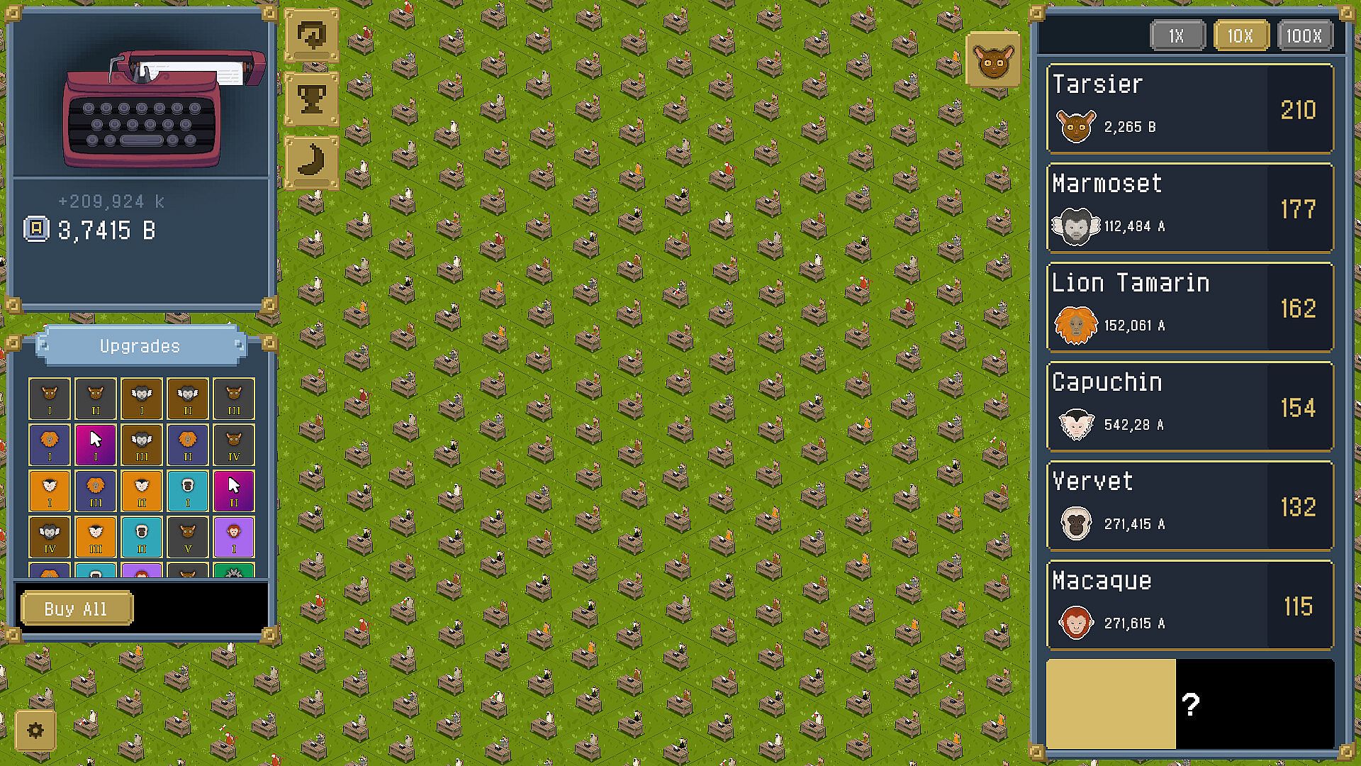 Infinite Monkey Clicker is a clicker game inspired by the Infinite Monkey Theorem. The idea that an infinite number of monkeys typing on typewriters could eventually write any text, even the greatest works of literature.