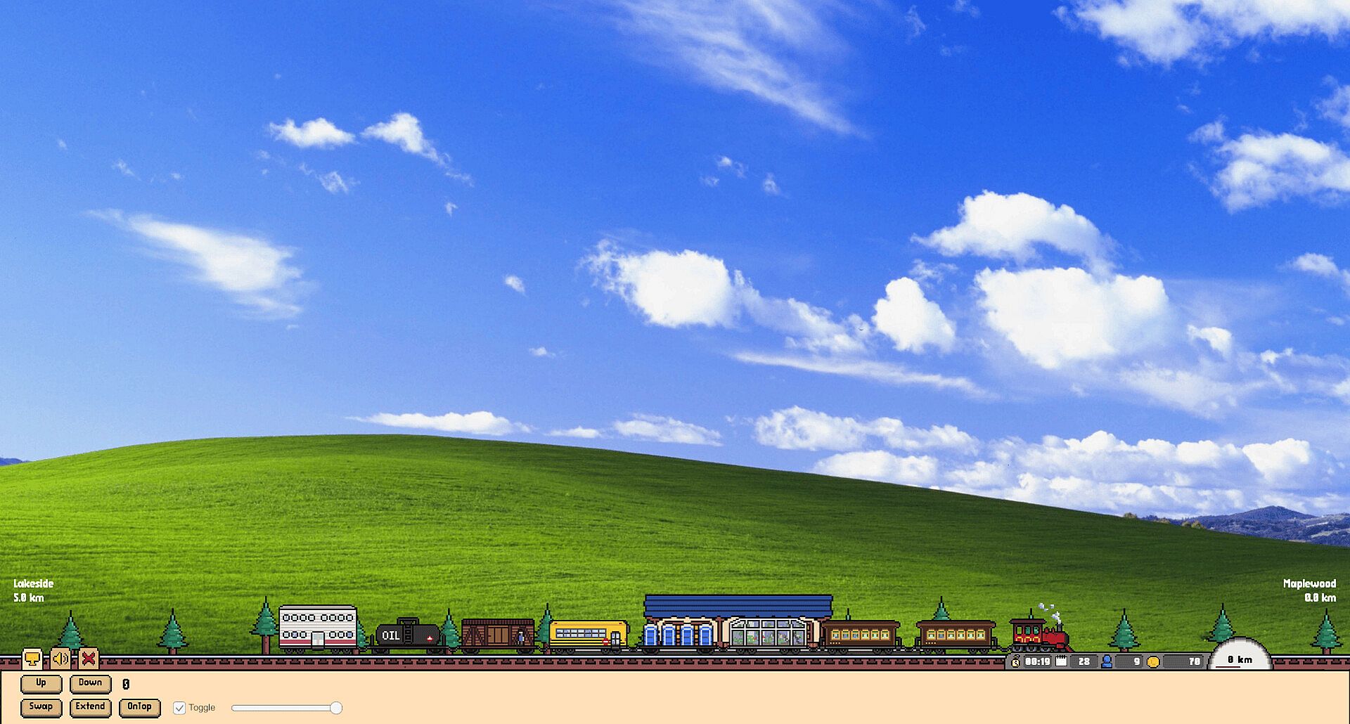 Infinite Train Company is a cozy overlay idle train game where you build, manage, and watch your trains travel endlessly across the world. Relax and enjoy the charm of trains rolling through different landscapes while you grow your trainline.