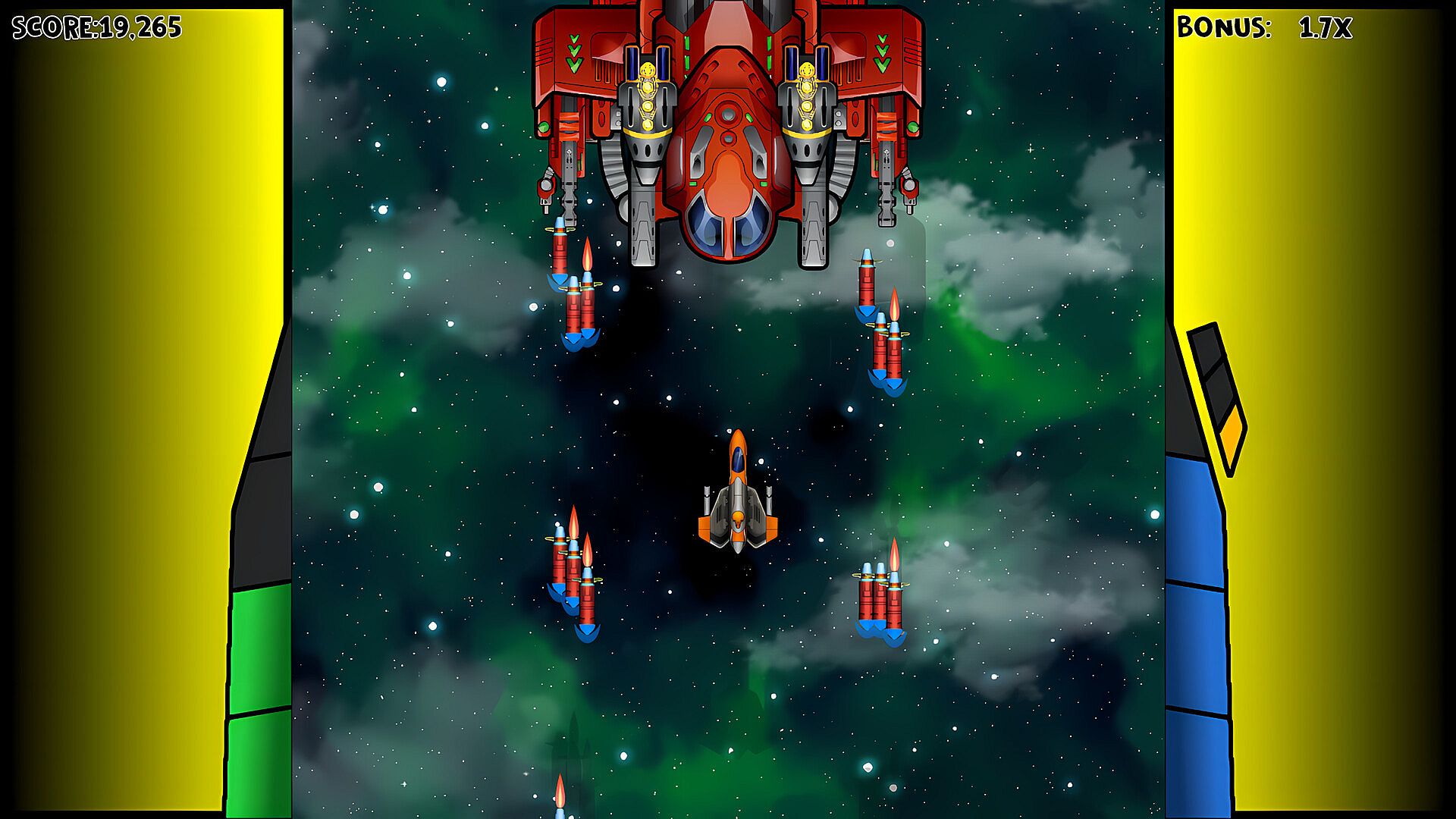 Pure action in endless space. Top-down view. Your ship. Hordes of aliens. Deafening explosions. Collect power-ups in the midst of chaos to instantly boost your firepower, speed, or defense. Your goal is to become invincible. Outer space is your arena. Prove your superiority.