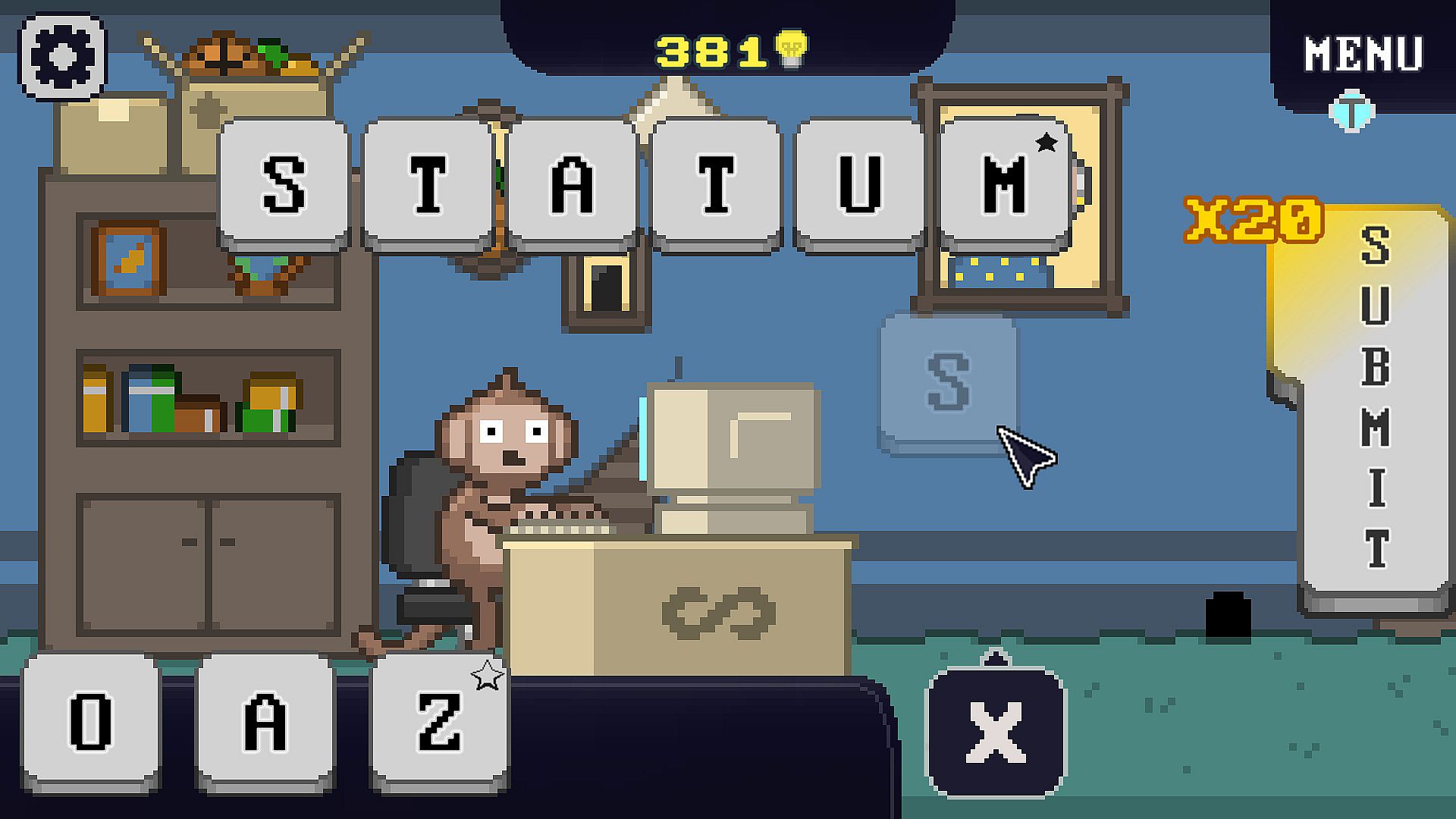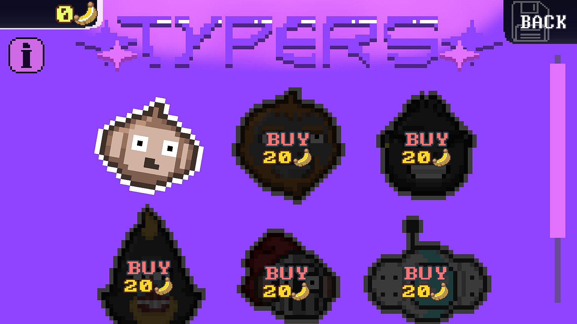Infinitype is a casual word game that follows a group of primates on their quest for knowledge. Go for large words and collect many bananas!