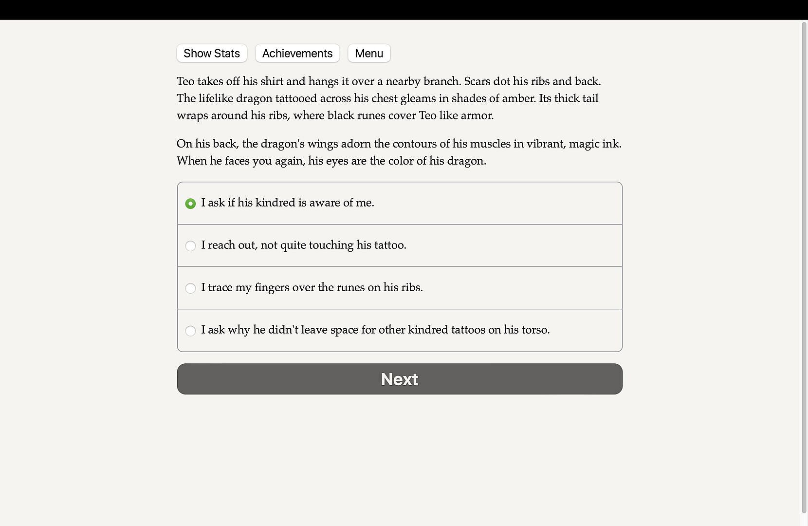 Ink and Intrigue is an interactive erotic fantasy novel by Leia Talon, where your choices control the story. It’s entirely text-based—300,000 words and hundreds of choices, without graphics or sound effects—and fueled by the vast, unstoppable power of your imagination.