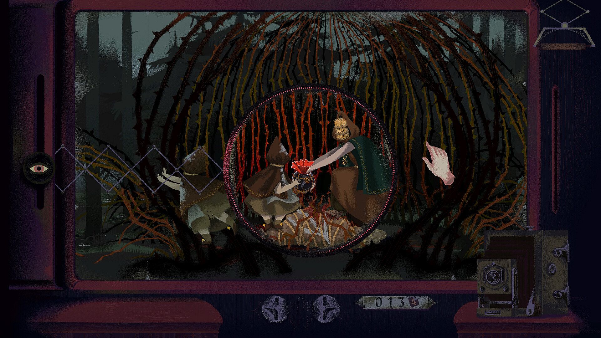 You are equipped with a magnifying glass, which allows you to peek into the past. Use it: nothing is certain in the present until the past is untangled. Wonder what the villagers were up to last night? Peek into that fragment of the past through their windows!