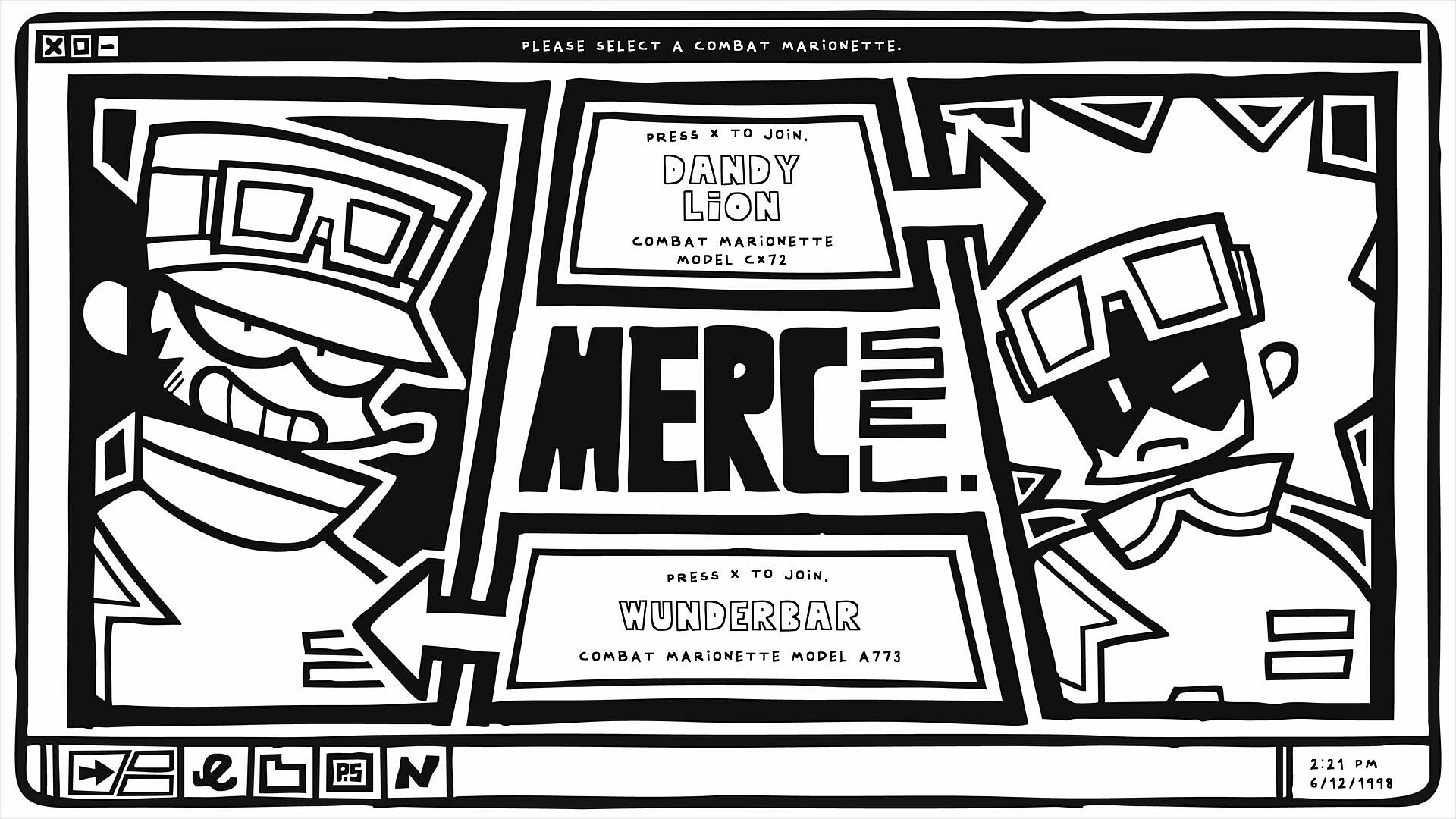 Featuring Hand-drawn graphics and 2D Shoot 'em up gameplay, up to two players can work together to take on contracts, earn upgrades for their Combat Marionette, and rise the ranks of this strange new world of Mercenaries.
