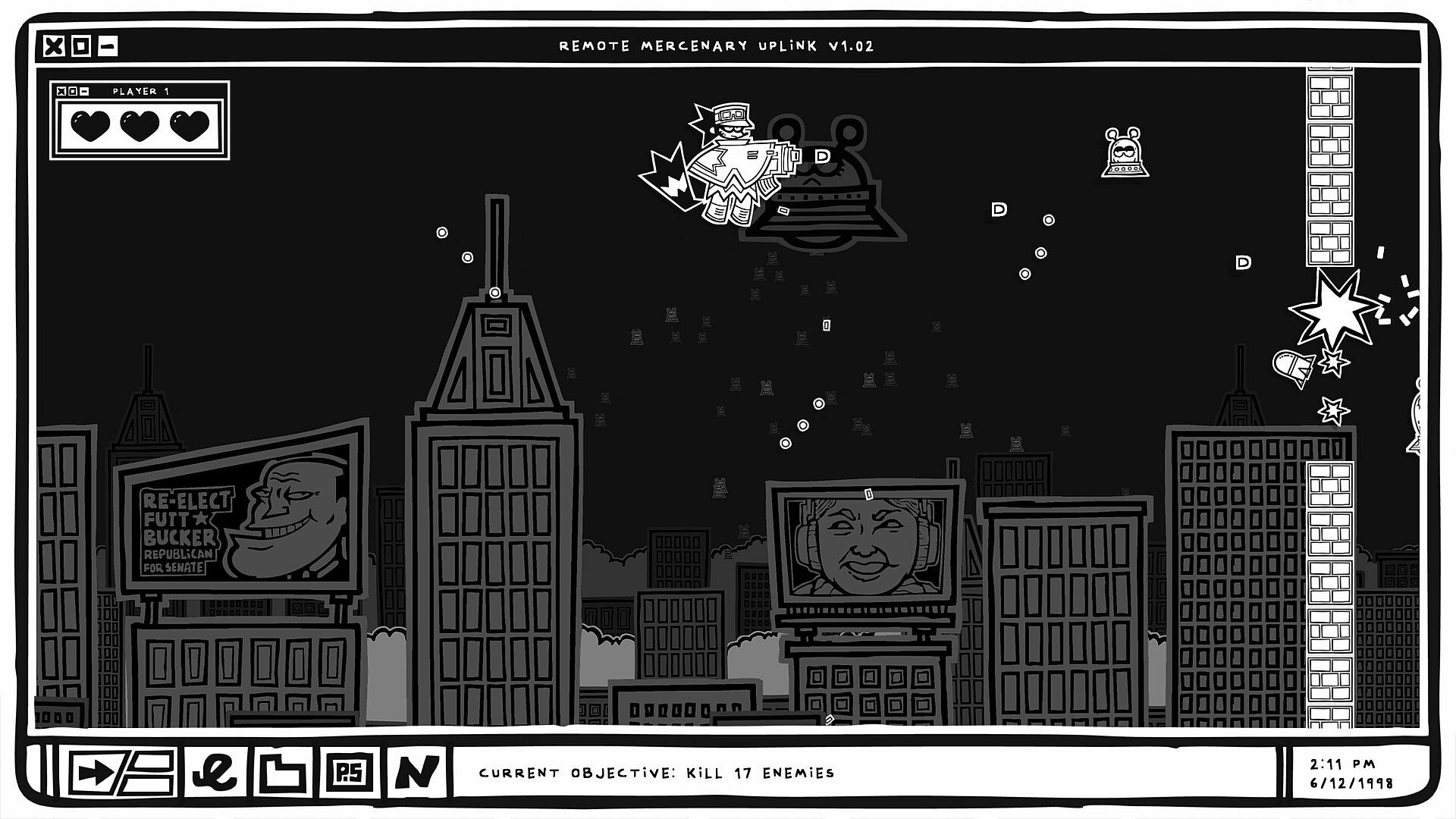 It's 1998, and Remote Mercenary Work is the hottest new trend. With a combat marionette- a robot piloted through the power of the world wide web- anyone with a dial-up connection can work as a mercenary from the comfort of their own home.