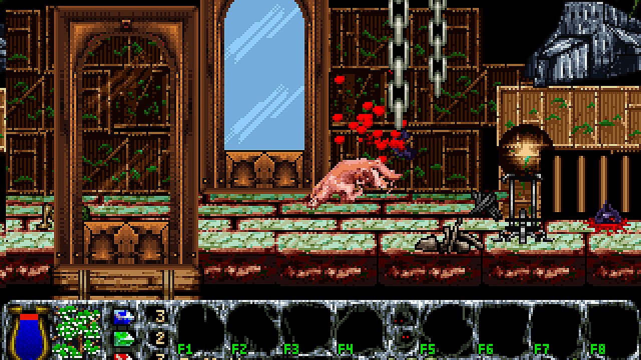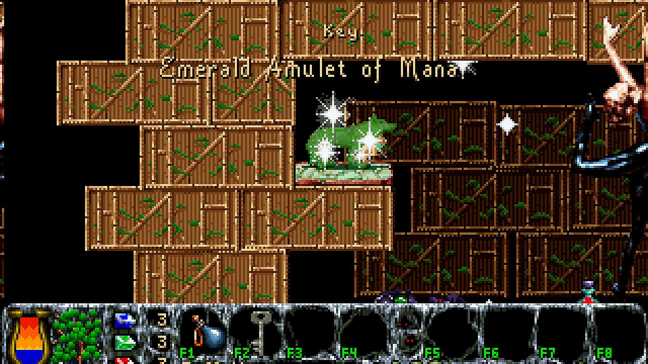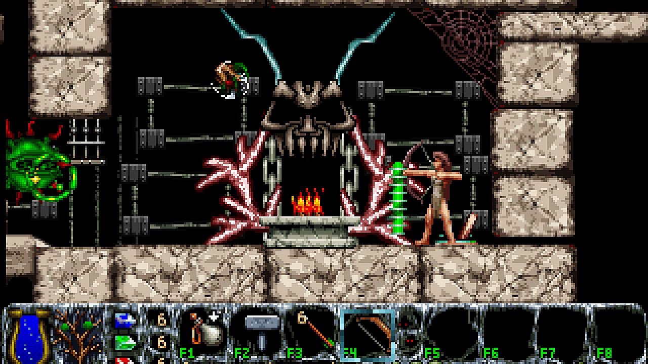 New levels feature landscapes, monsters, potions, scrolls, and amulets that boost health, mana, or strength. Collect items into an eight-slot inventory for use, drop, or toss, activated via function keys or menus. This indie PC game suits fans of classic side-scrolling action adventures with shape-shifting combat and resource management.
