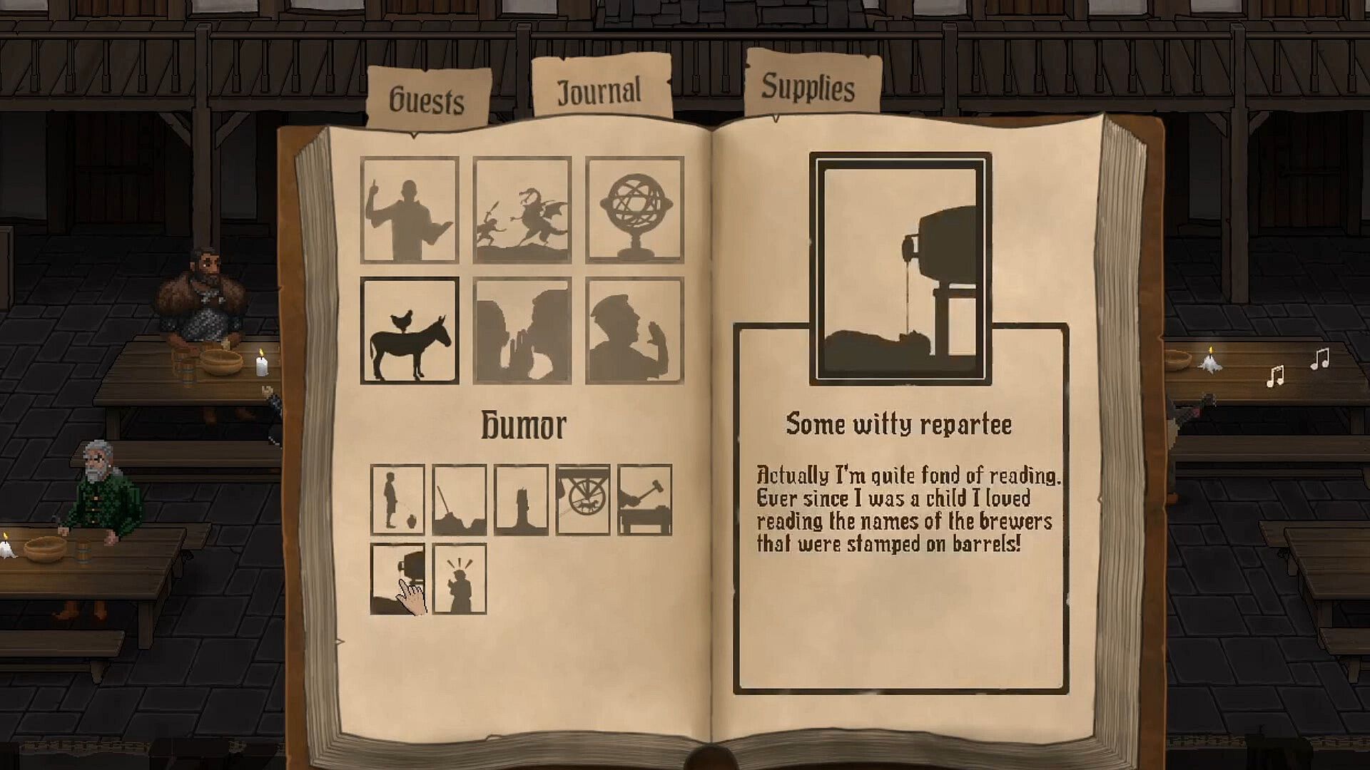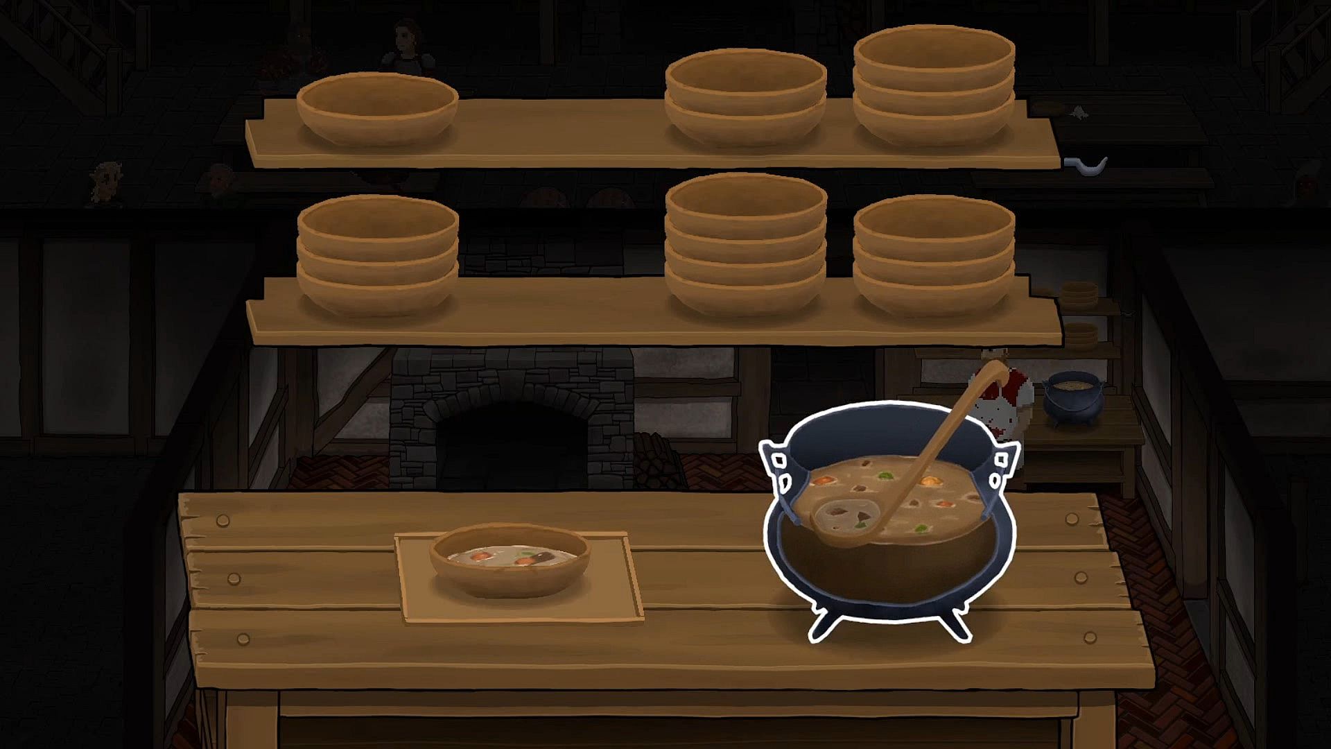 The ale must flow. Manage your den of dissolutes by hauling barrels, pouring drinks, and restocking the cellar. Hunt and forage for ingredients, cook them up, water them down, and fill your guestsâ bellies to keep them relaxed. Naturally, a plump roast chicken will keep spirits higher than a dribble of gruel.