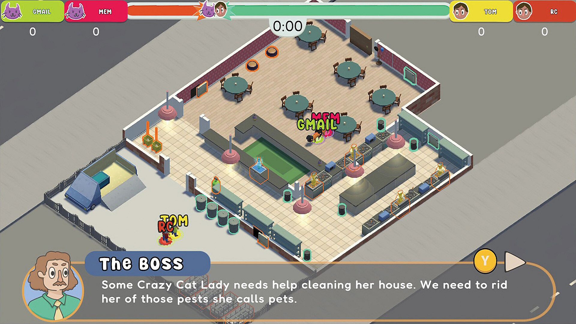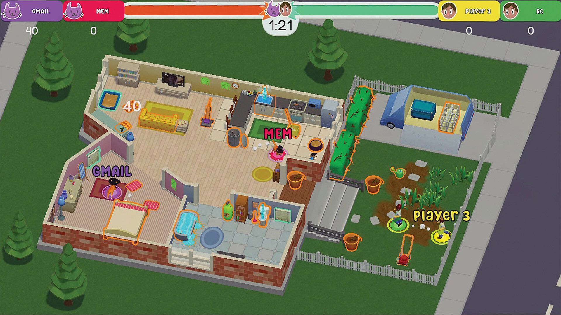 Battle in a head to head competition against up to 4 family members or friends where it's Cats VS Keepers. You decide the difficulty as you battle your way through houses and restaurants alike.