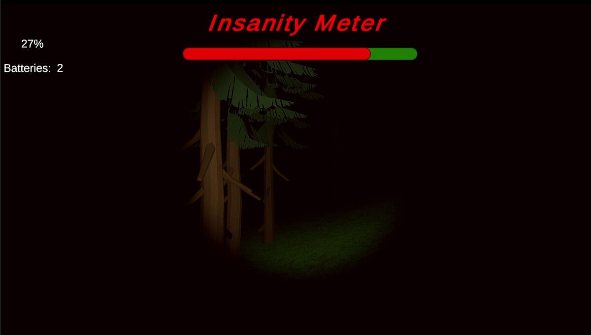 You must escape the massive forest without being killed by ghosts or going insane. you must preserve your flashlights power as you try to escape the forest, you slowly get more insane over time as you start hearing things, your screen goes a bit red and it states to shake.