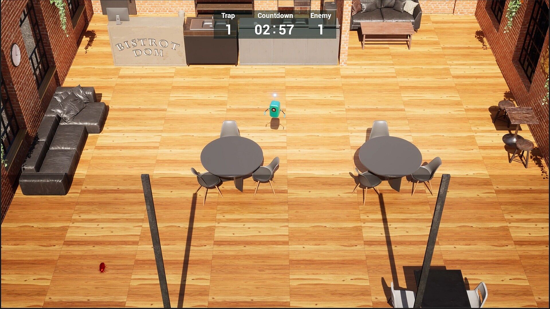 The player controls a robot that exterminates cockroaches.