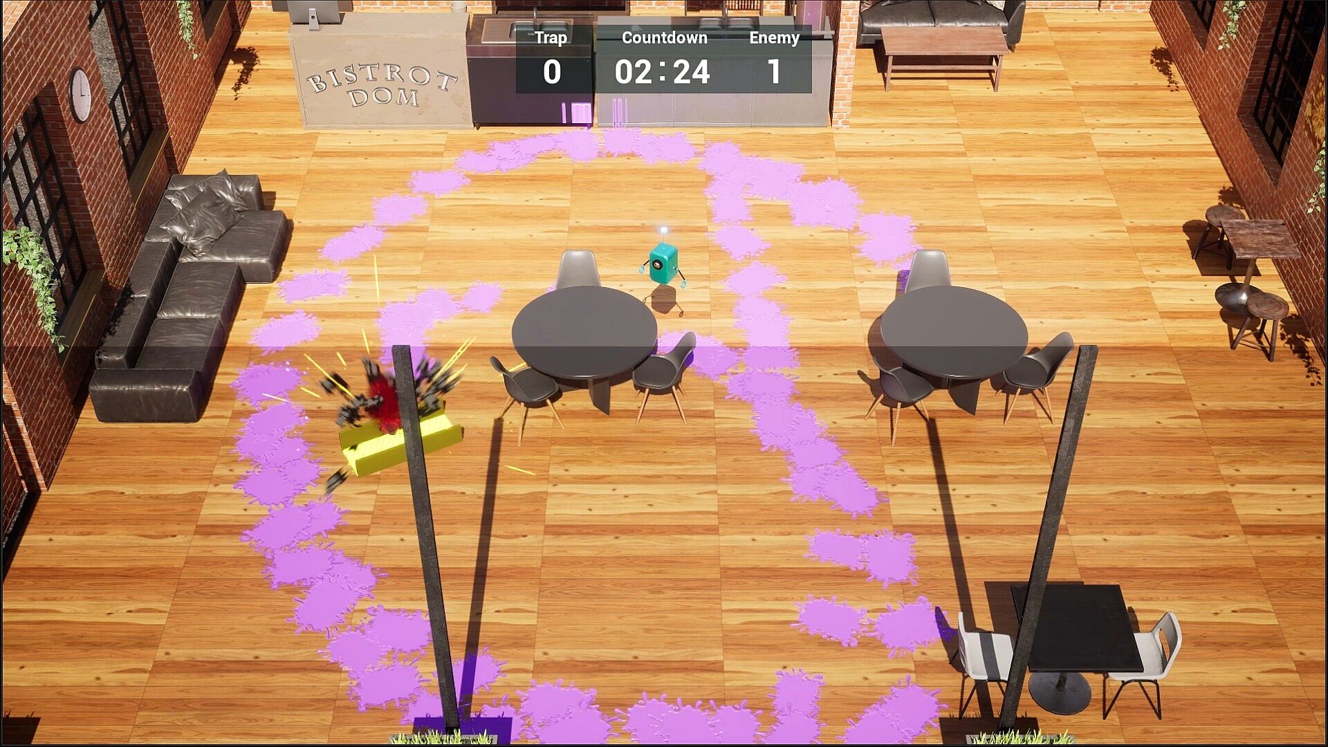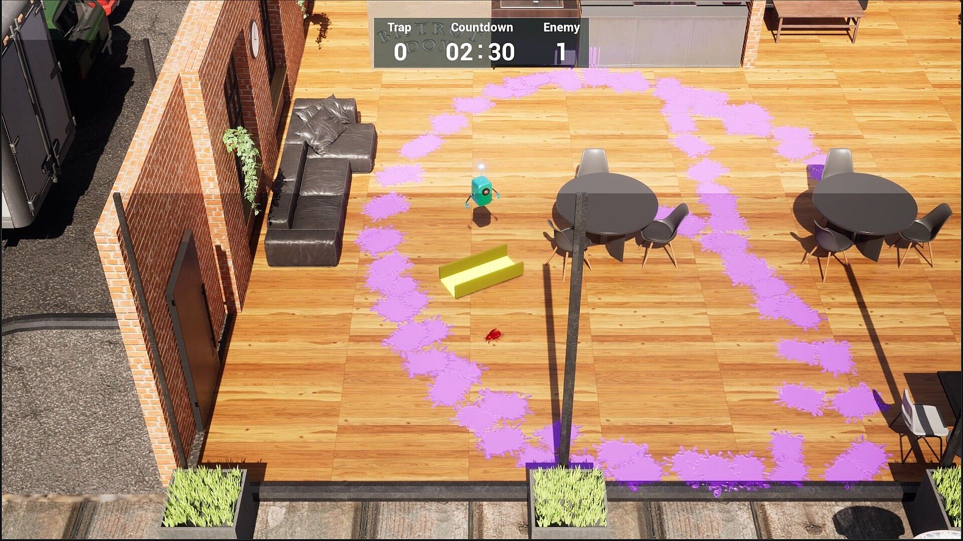 The player scatters the liquid to narrow the cockroach's movement range,
