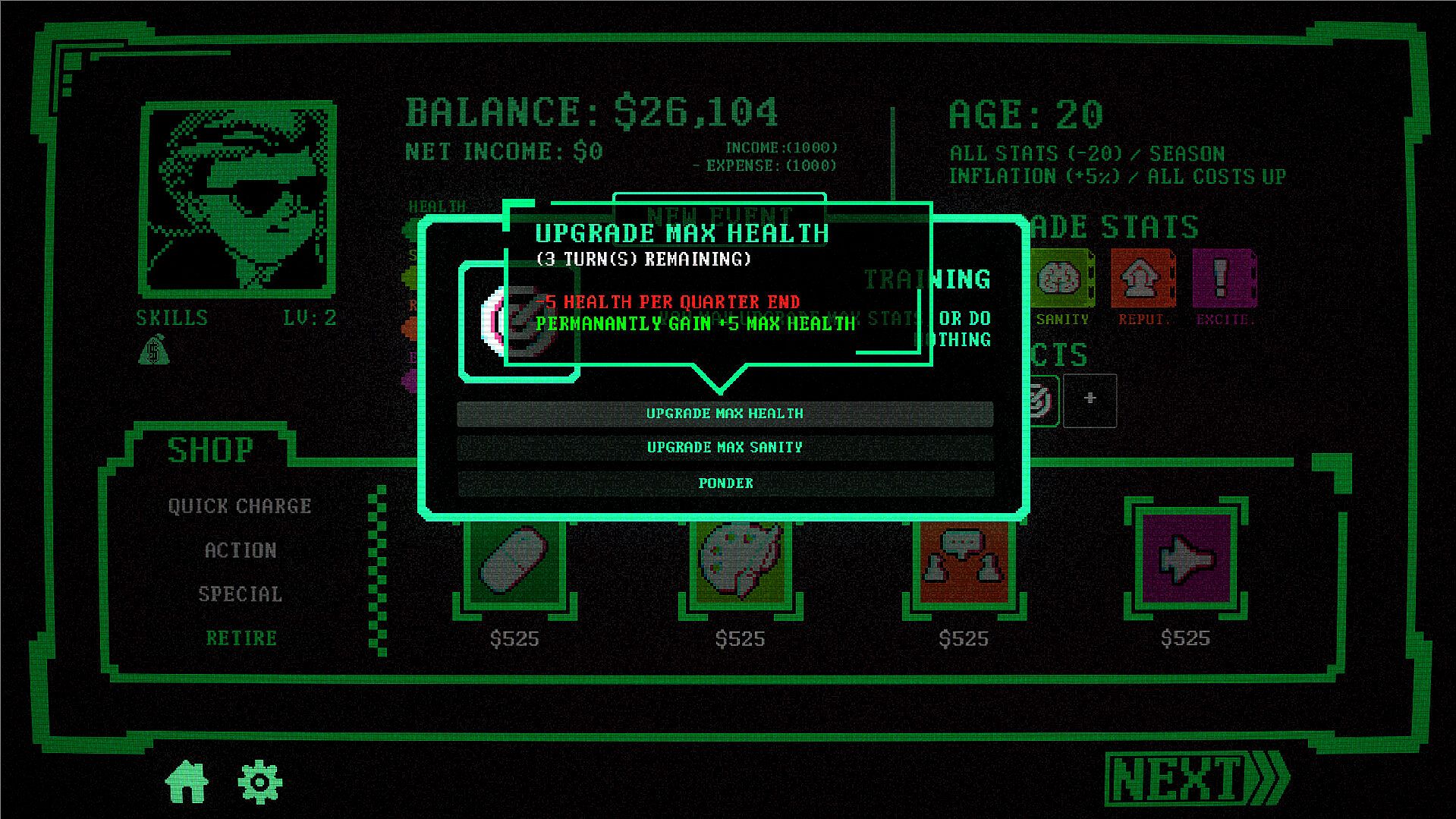 Command the market in each run, creating opportunities and risks as you build towards your weekly financial target. Push too hard and the cost of entry skyrockets. Play it too safe and the market slips away.