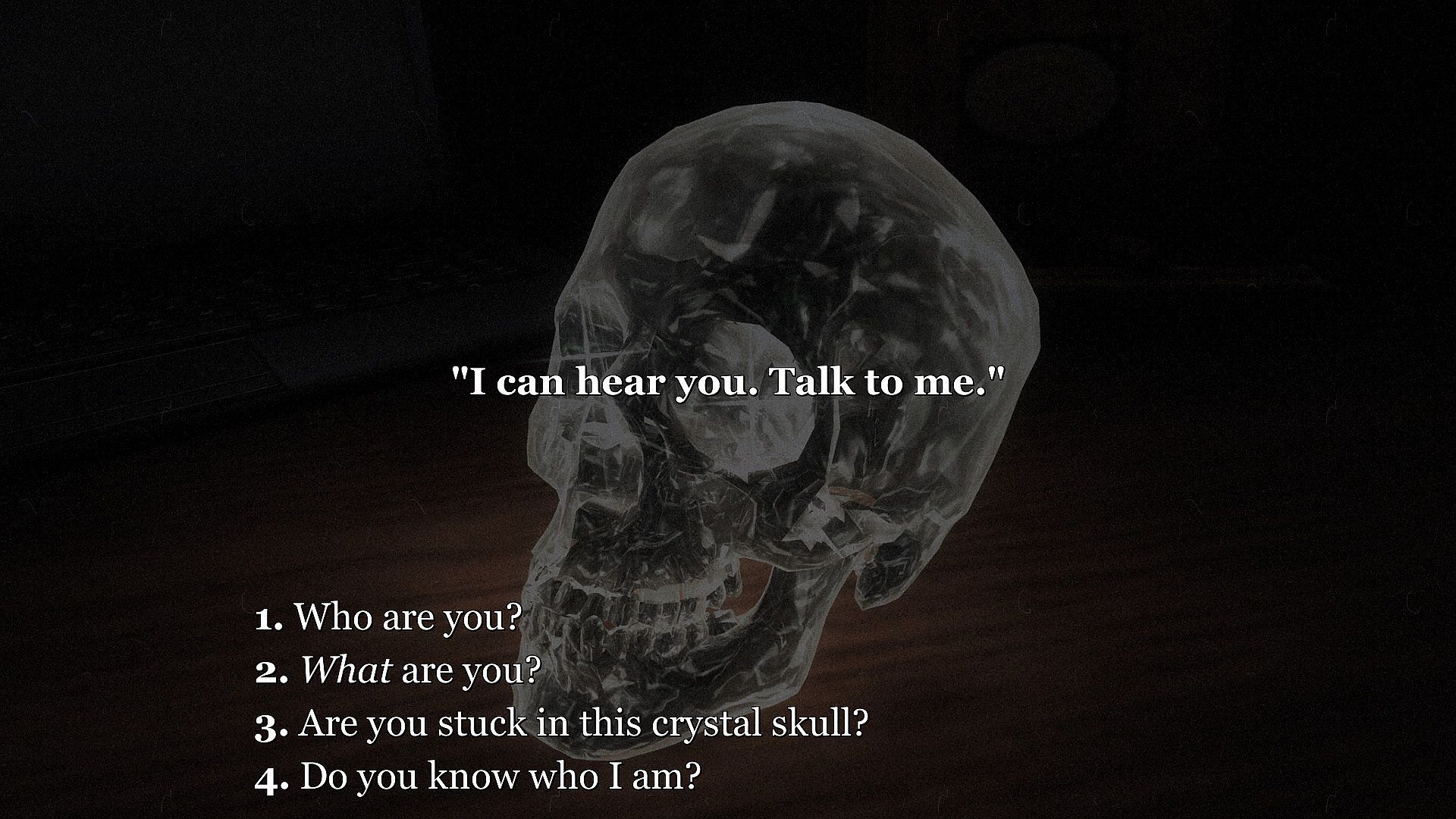 You are billionaire in Crystal Skull II this time. You buy the mysterious crystal skull and it talks to you. It says that it will bring you joys no mortal can ever reach, but it demands something first.