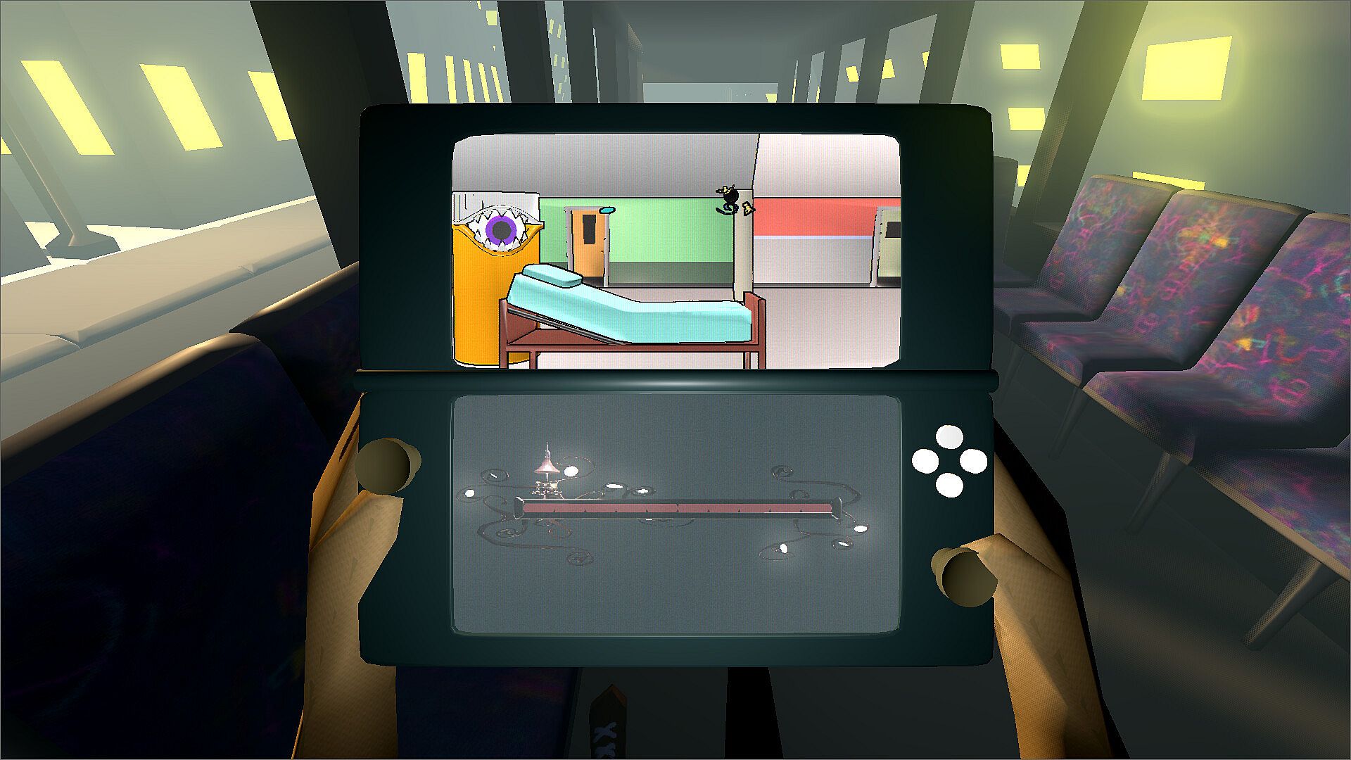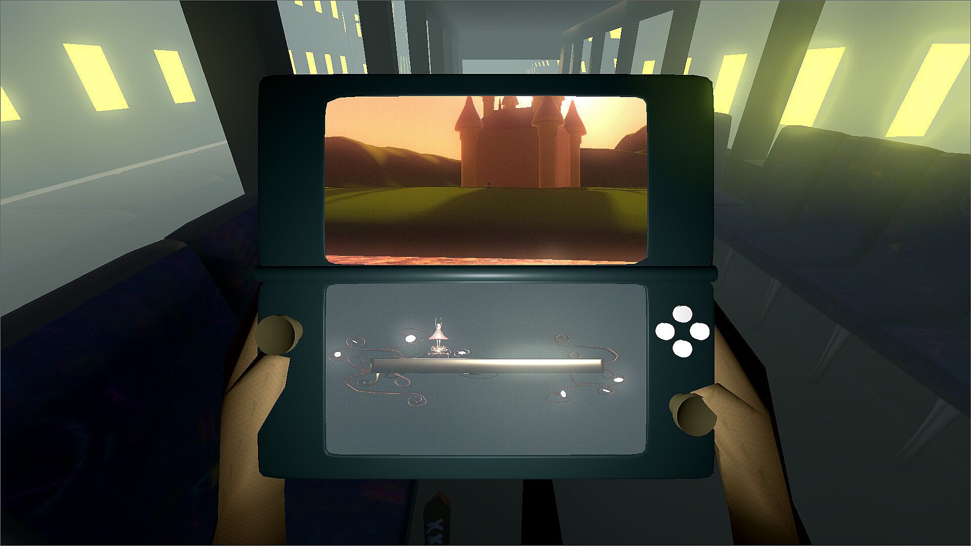 The ocean side: A 3D world which you traverse an open sea by boat to explore and find levels.