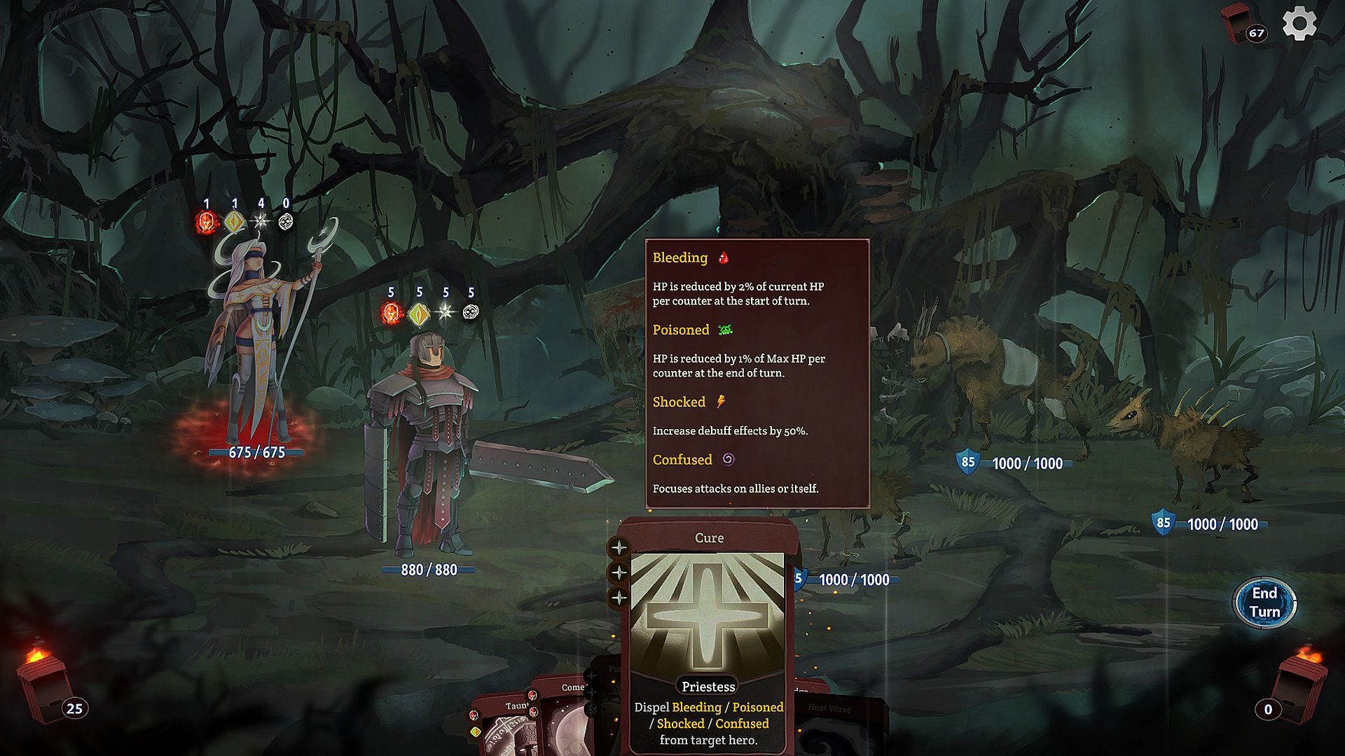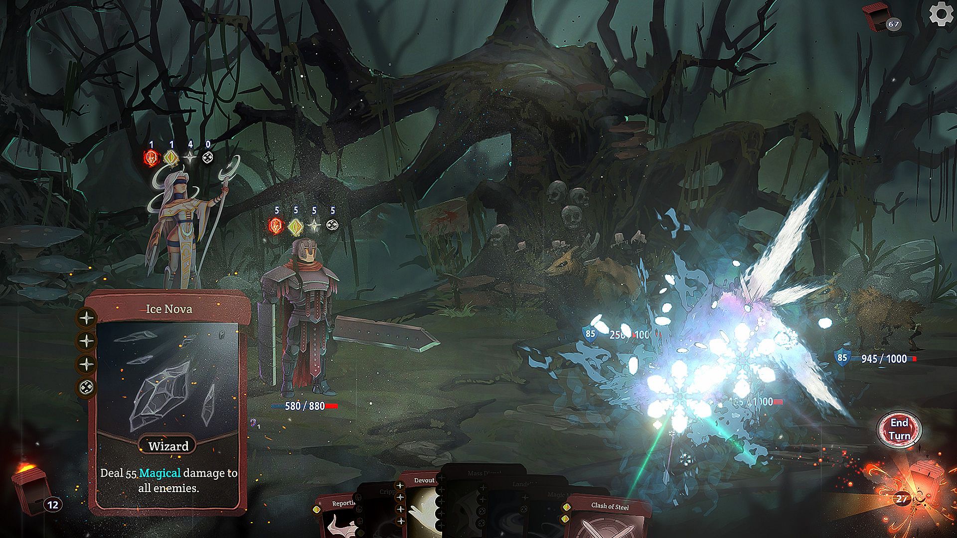Every descent into the crypt is unique. Procedurally-generated maps with branching paths, multiple encounter types (minions, elites, bosses, treasures, events, shops, rest sites), and ever-changing enemy AI that keeps you at arm's length from certain death! Make pivotal choices in event encounters, experience witty and ominous creatures in your journey through the crypt, and find new ways of staying alive.