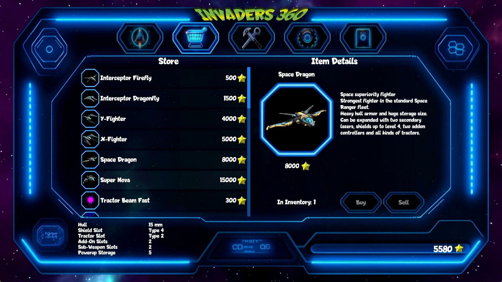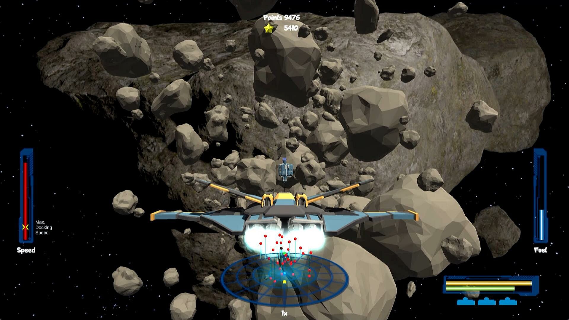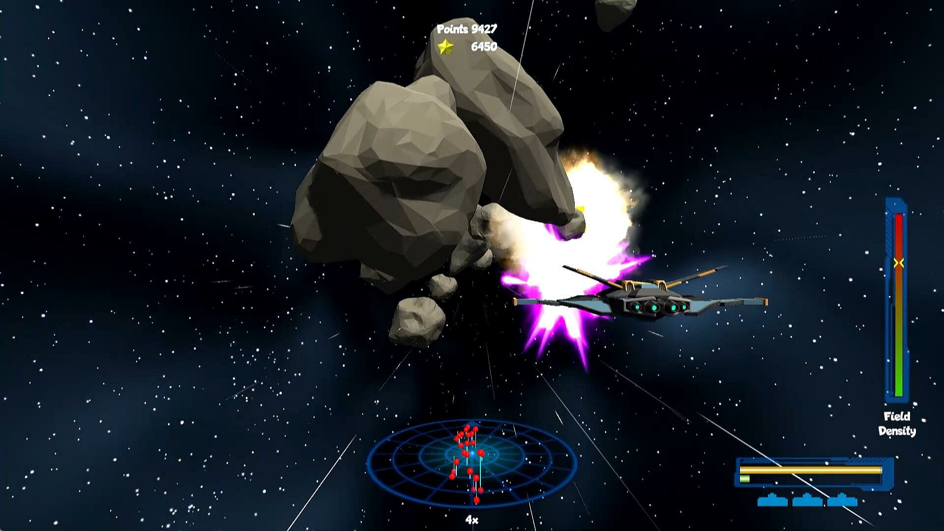 Between station battles, you must cross the asteroid belt to get to the secret supply station to repair and equip your ship.