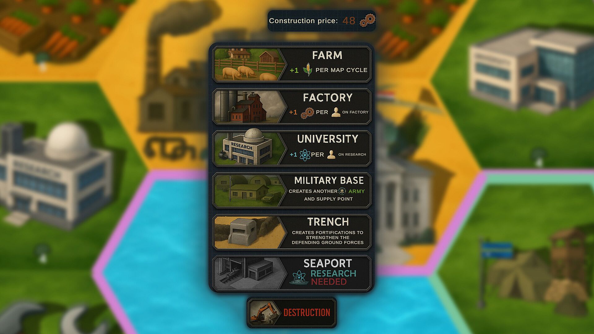 Balance production, expansion, and military pressure as your industry scales. What you choose to build — and when — will determine the outcome of the entire conflict.