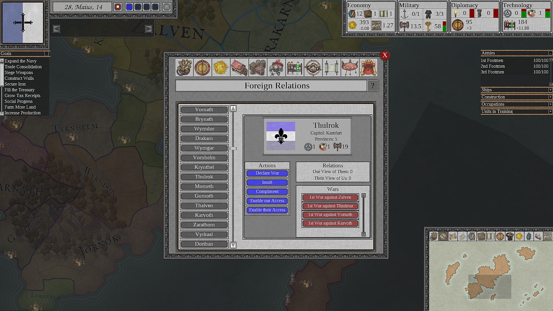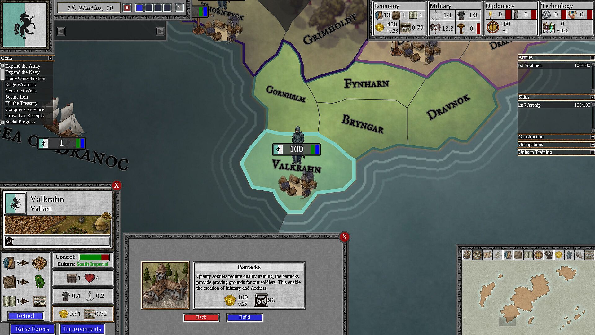 Iron Dice is a grand strategy game set in a distant yet familiar medieval world. The old empire has collapsed, and the remaining states are at war. Choose one of 60+ kingdoms, each with its own culture, history, and goals. Tell your own story as you decide whether to rebuild the empire or fight for independence. Some paths are easier than others, but each will require foresight, guile, and strength. Let the iron dice roll!