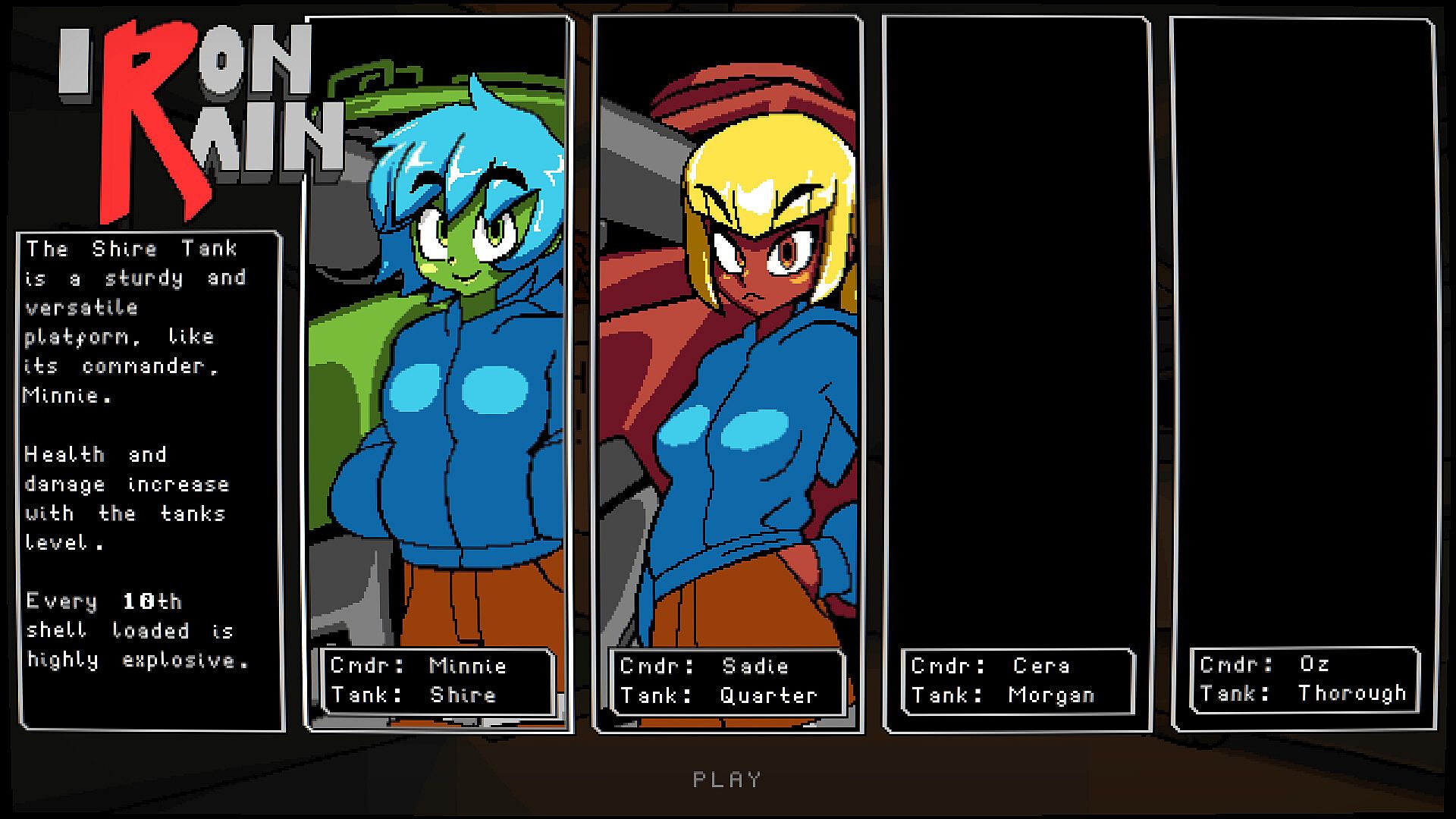 Iron Rain, is a series of highly extremely advanced armoured assault vehicles: Shire, Quarter, Morgan and Thoroughbred. Piloted by her records of her old strike team. Captain Minnie, Captain Sadie, Captain Cera, herself, and a stranger.