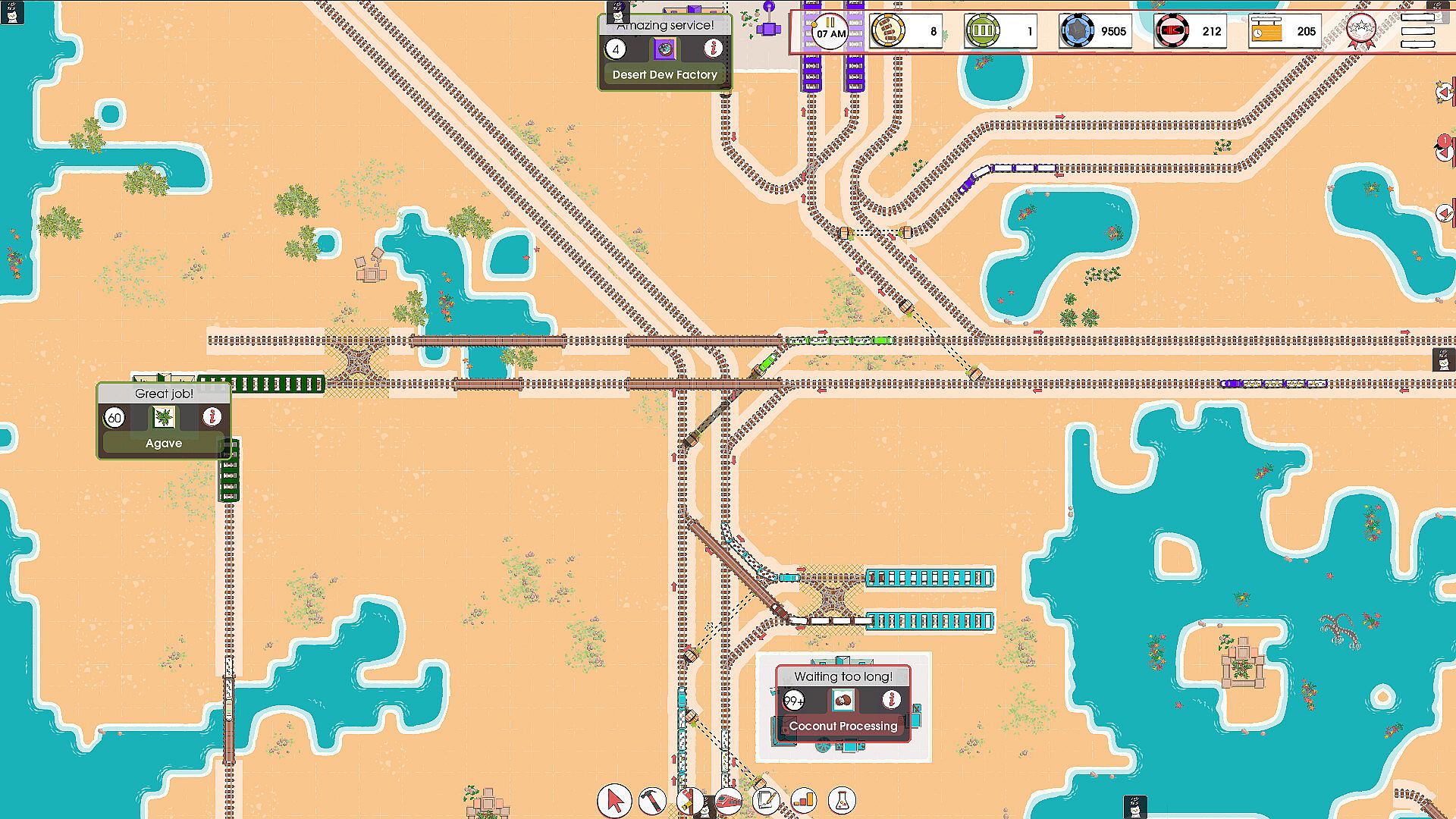 Your goal is to set up an efficient rail network that keeps your passengers happy and on-time