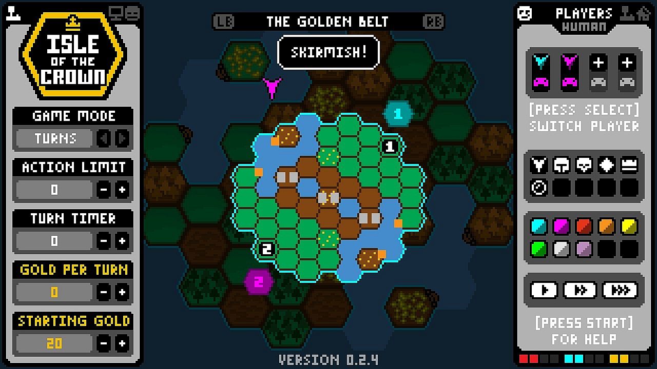 Grow your domain from a humble base into a powerful kingdom through strategic pixel-art battles on hex grids. Players explore, expand, exploit resources, and eliminate foes in chess-inspired matches, deploying cards as pieces with unique abilities. Easy to pick up yet tough to master, this indie strategy game delivers turn-based clashes on varied island maps. Multiple modes keep matches fresh: basic turns, timed pressure, or expert play with card cooldowns mimicking RTS tension. Up to four players join local or remote sessions in formats like 1v1, 2v2, or free-for-alls with shifting alliances for endless replayability. Casual strategists and hex tacticians find a perfect fit in this Early Access title on PC.