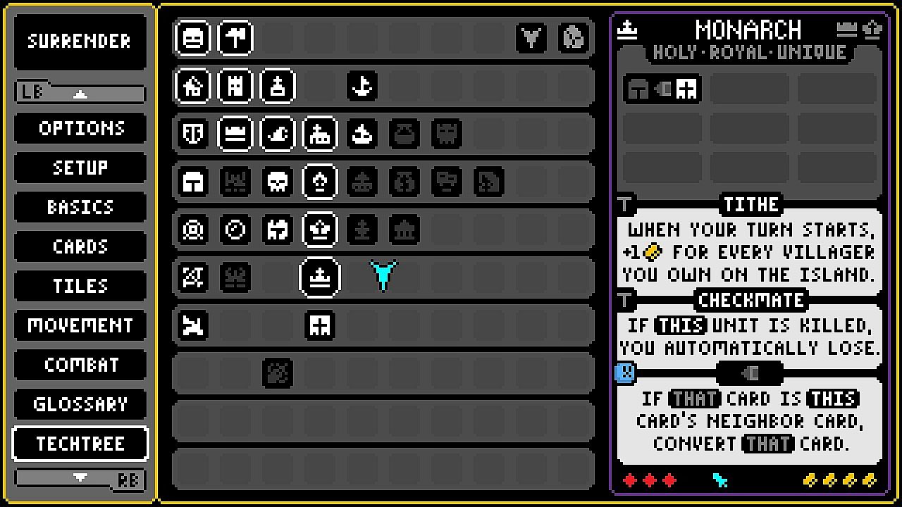 From a simple home to a mighty kingdom; explore, expand, exploit, and exterminate your opponent in this strategic pixel-art chess-like hex game using cards as your pieces and their abilities as your tools. As the saying goes; easy to learn, hard to master.