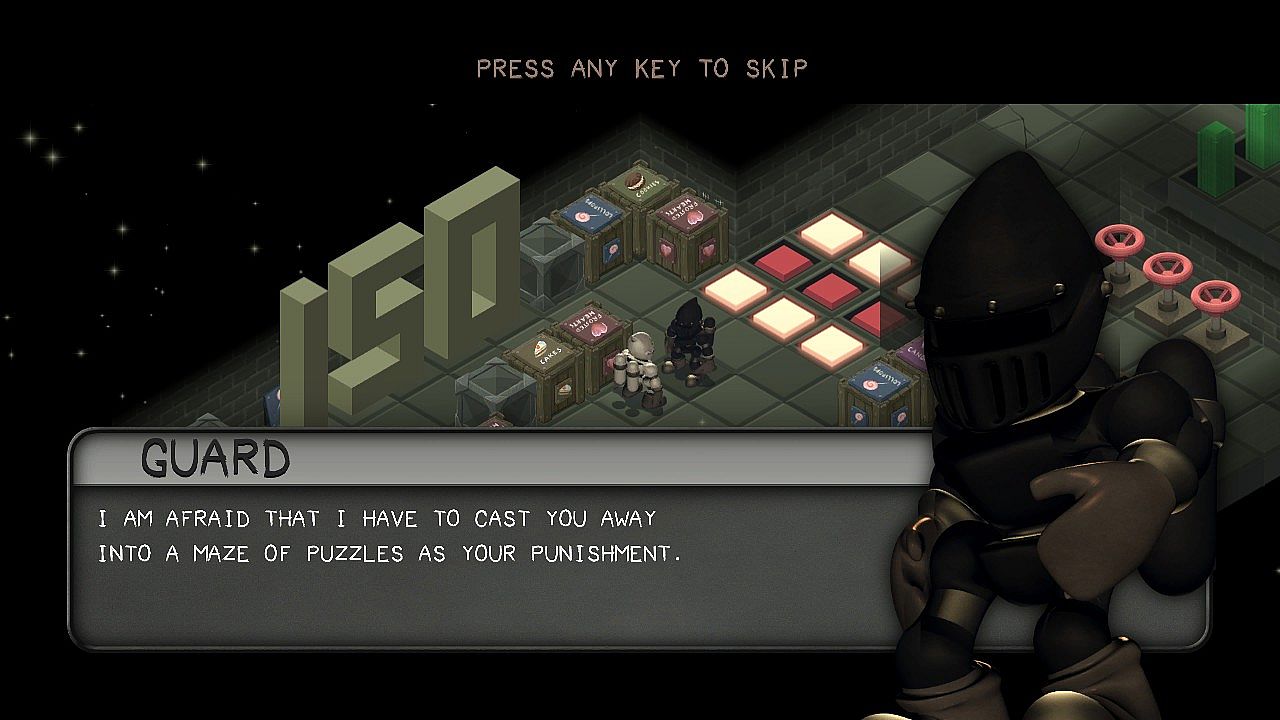 IsoBoom is a 2D isometric puzzle game about a small robot named SE01. The protagonist gets sent to a maze of puzzles as a punishment for theft. SE01 was promised forgiveness if he manages to beat the maze and escape.