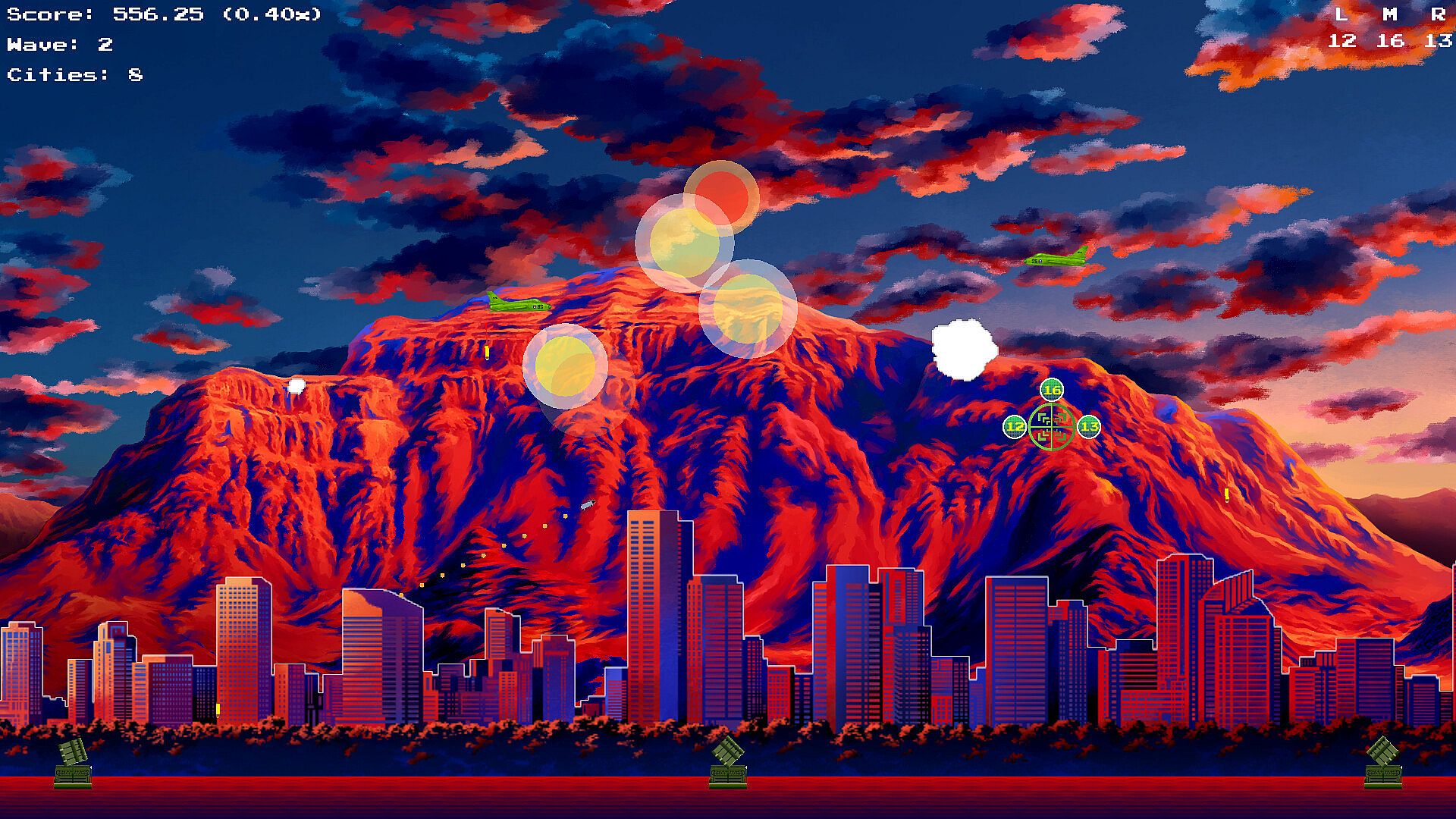 Iran has launched a missile attack at Israel and it is up to YOU to defend her! Use the mouse and keyboard to shoot down all enemy missiles and planes before the reach the city. If the city is still left standing, purchasable upgrades are offered to you in exchange for how many missiles you shot down.