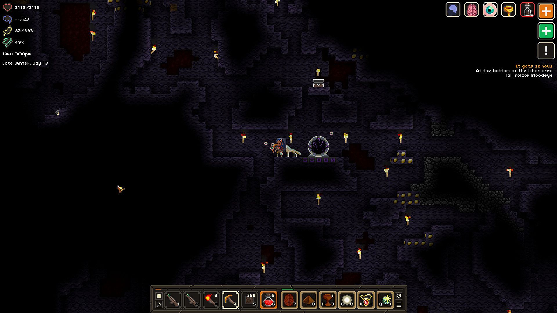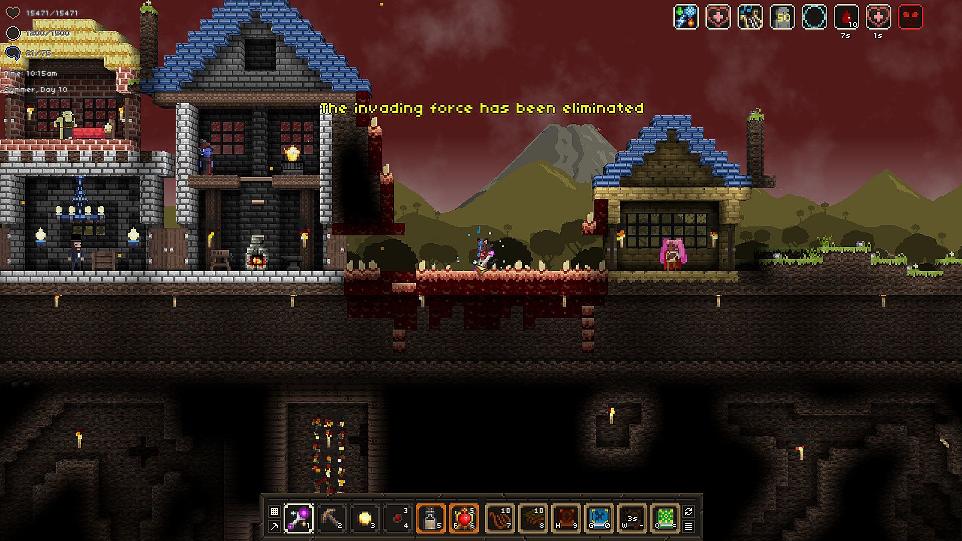 Creative - Enjoy all the game has to offer in more relaxed setting. No need to worry about survival mechanics, though still have the benefit of the survival tree. Many of the recipes and building supplies are already unlocked, which makes it much easier to languish in the joy of building and farming the whole surface. With no invasions to worry about, the only monsters that will be encountered are below in the dungeon.