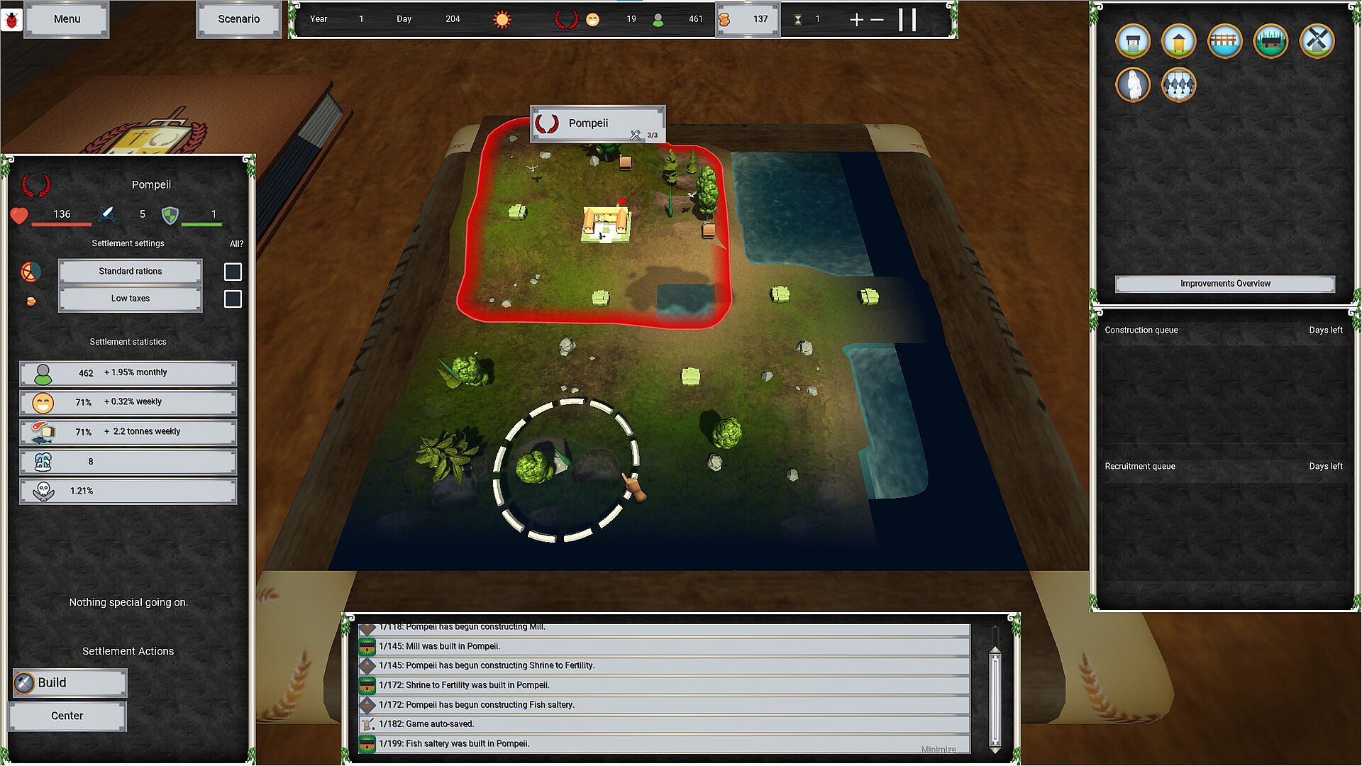 Oversee the survival and prosperity of your city through deep seasonal yield management. Store grain for the winter, adapt to unpredictable hazards, and balance rations, taxes, and happiness to keep your people thriving. High taxes and generous rations can both shape your city's fate, just like in classic survival city-builders.