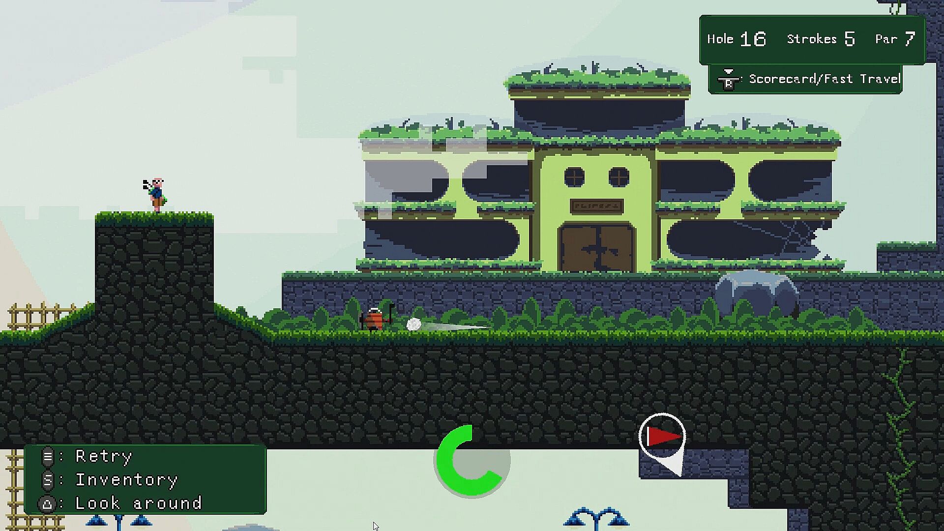 Jump and climb your way through two huge nine-hole maps in this hybrid of golf and action-adventure. The course is full of secrets to discover and challenges to complete in exchange for consumable items that improve your golf game.