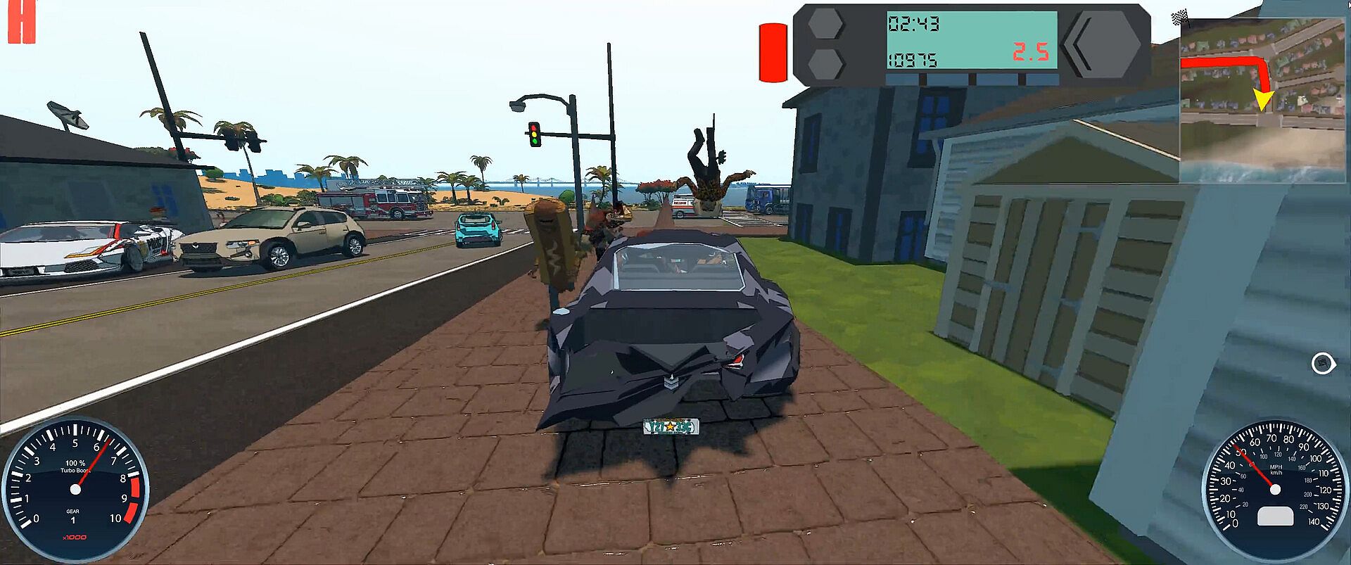 • Destructive Driving - Destroy cars, fences, mailboxes, trees... Almost everything can be destroyed.