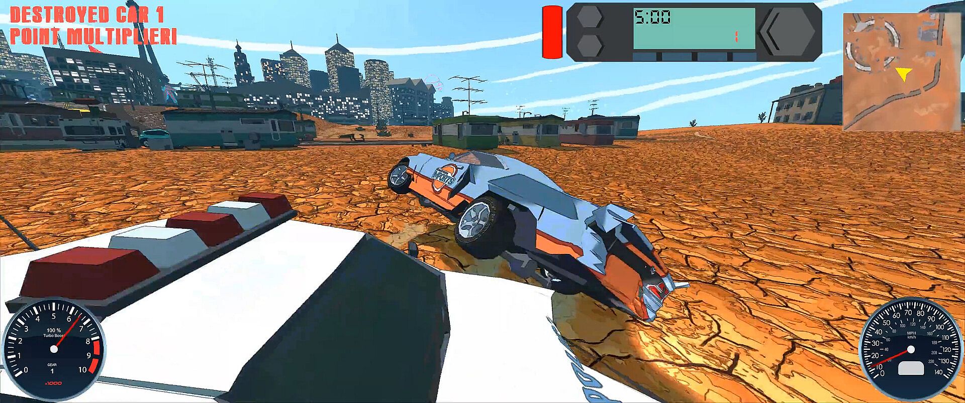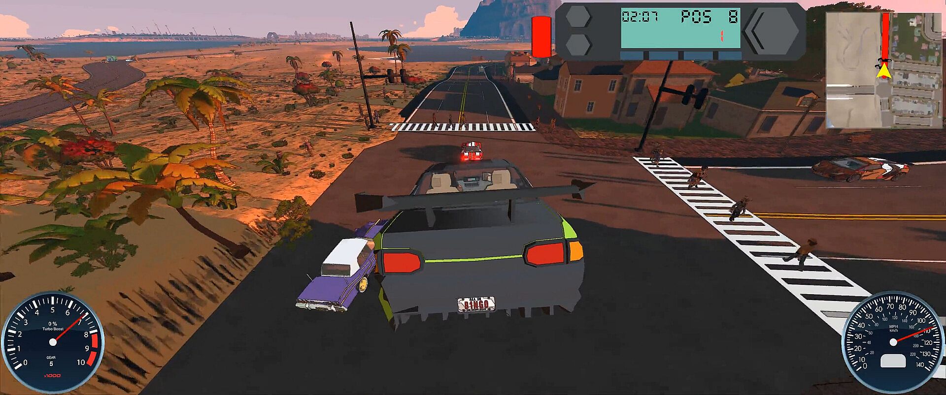 Race, Crash, Explode, Outrun Aliens. Upgrade your car. Get a new one. Run over people. Escape sharks. Fly off jumps. Just have fun.