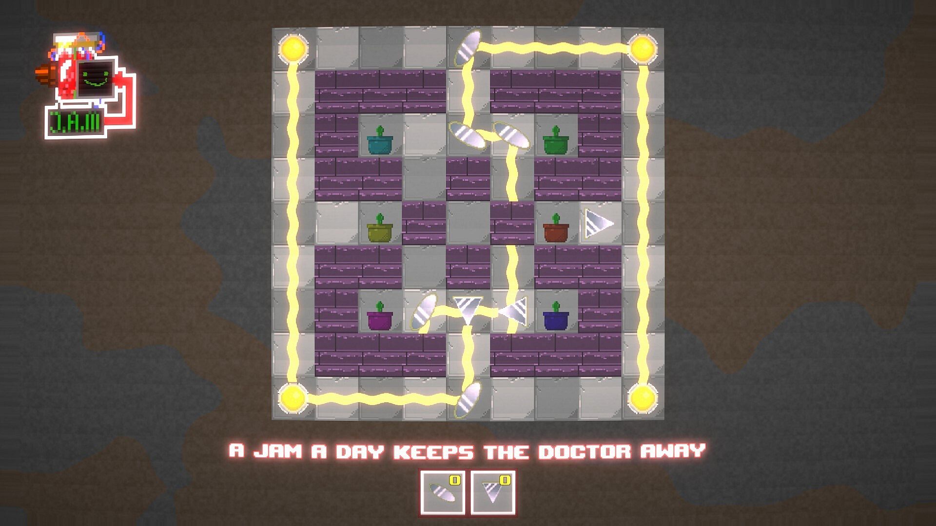 In Jam's Adjustable Mirrors, Master the art of manipulating rays of sunlight to help the friendly Jam-bot power an elaborate, (and questionably legal), jam-making operation!