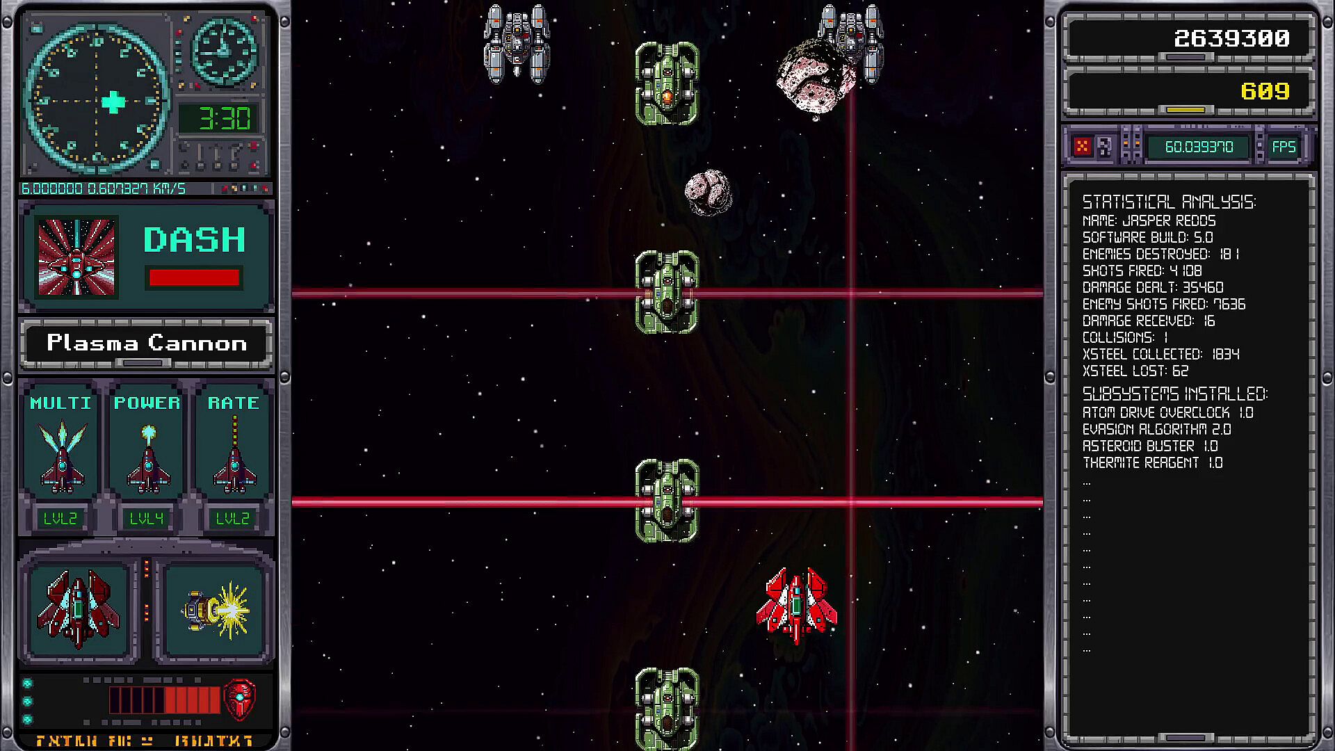 - Satisfying Controls: Jasper Redds was created with great love for the shoot 'em up genre, and implements a custom control system that merges the precision of a joystick with the speed of a D-pad, combining the best of both worlds for the ultimate gameplay experience.