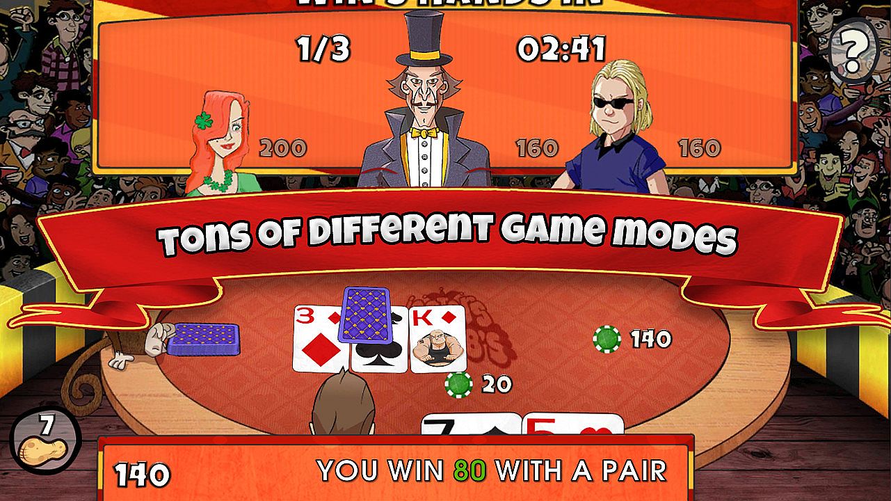 Play Texas Holdem poker in single-player mode and uncover the Circus Jester's secrets. Challenges, tournaments, and survival games deliver fresh takes on poker gameplay. Use your card skills to unlock story elements and explore the circus world by world. Solve riddles, restore cut-down trees, recover Balthasar's stolen rabbit, and tackle stranger circus troubles. Take control of the narrative through poker victories that help everyone around. Casual adventure fans who enjoy poker-driven challenges and mystery-solving find a unique fit here.
