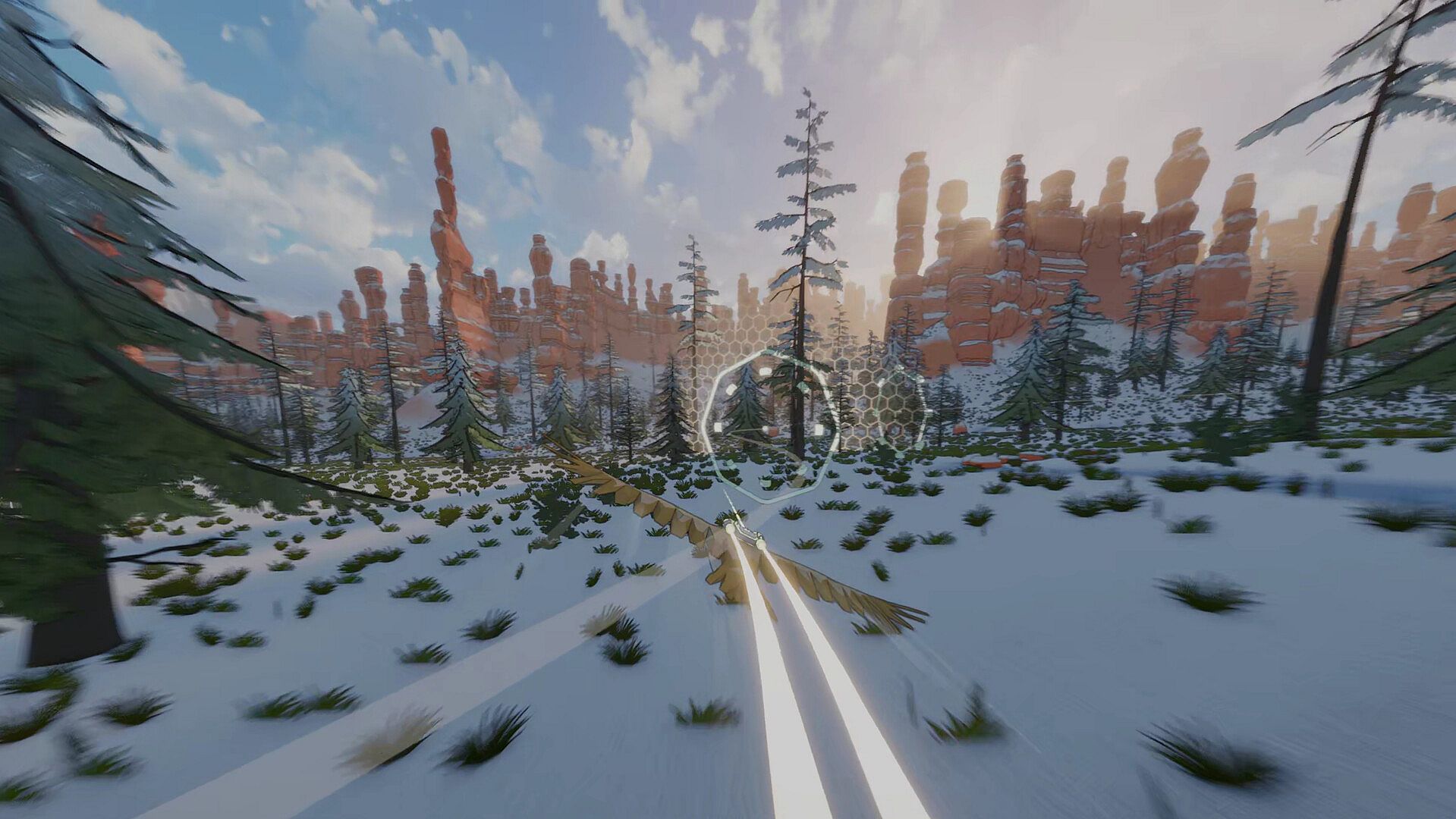 With full control over pitch, yaw, and roll, plus the ability to adjust your wingspan on the fly, every turn and dive is in your hands. Use your dodge and dash abilities to avoid obstacles and dart through gaps as you fine-tune your flight to shave milliseconds off your time.