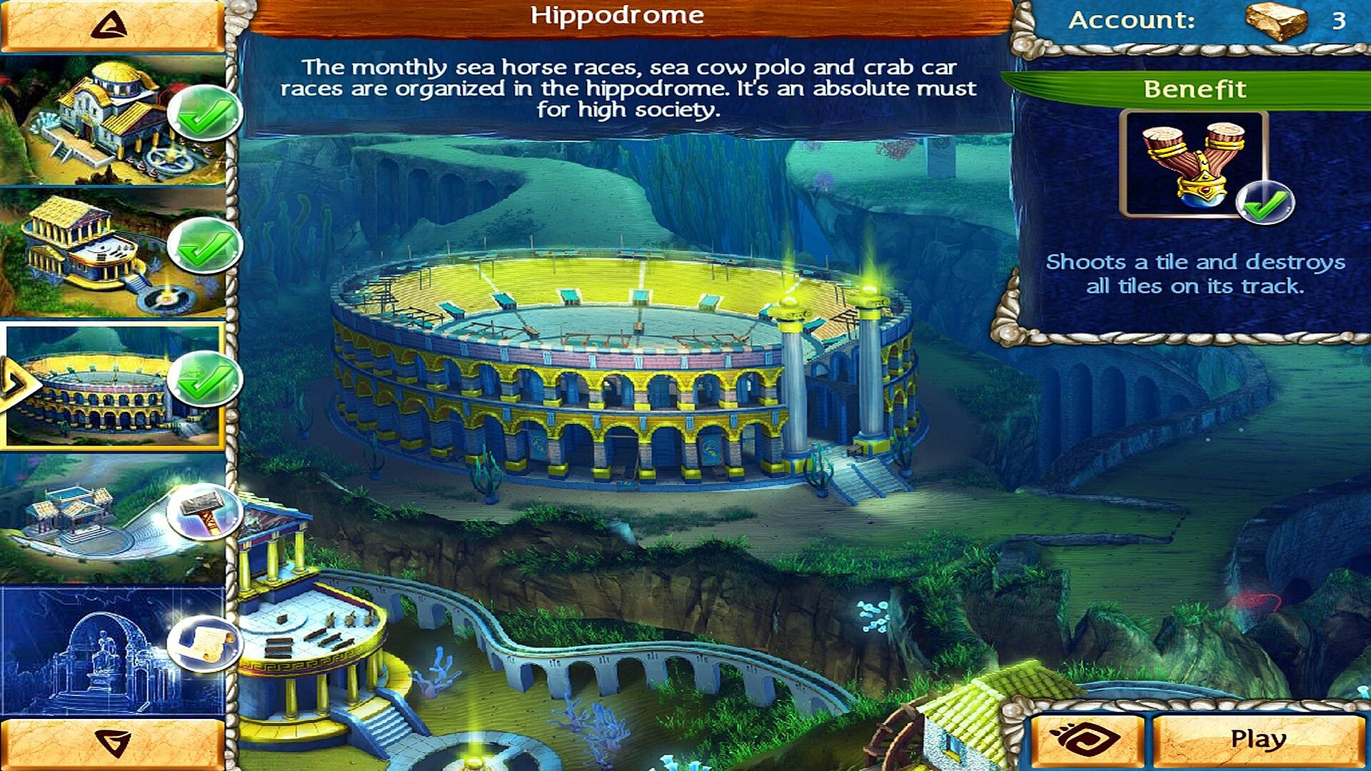 • Restore Atlantis to its former glory in this tile-matching adventure