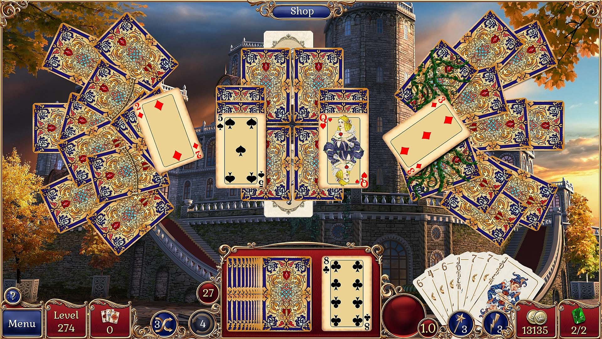 Travel across an ancient land and rebuild eight majestic castles. Dozens of unique game play variations mix up the classic Solitaire such as locked and frozen cards, obstacles to remove like vines and wax seals, and many power-ups like wild cards, jokers, and shuffles.