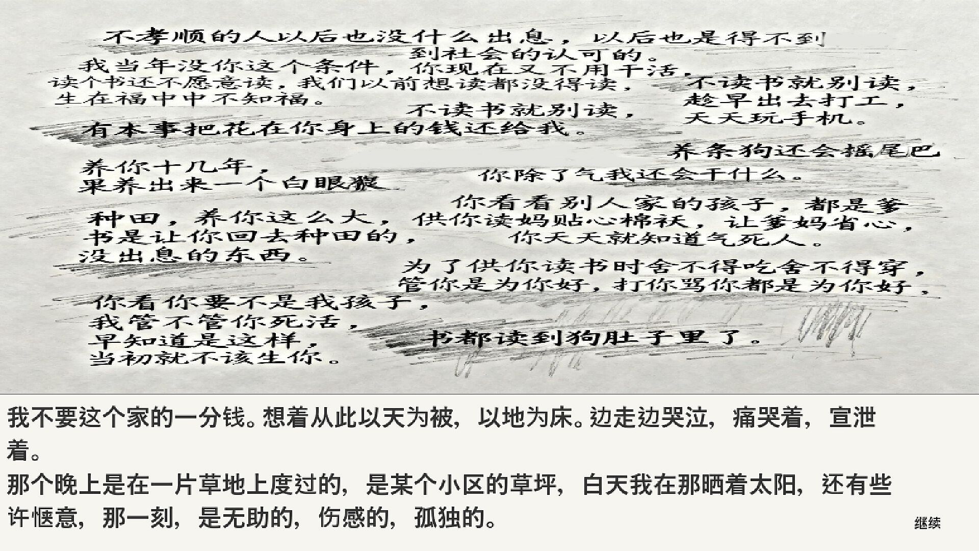 一个青少年,在家长的言语风暴中成长,在面对思想的禁锢,学业的压力,社会的诱惑,个人的缺陷多方面的冲击,是走向深渊?还是救赎?